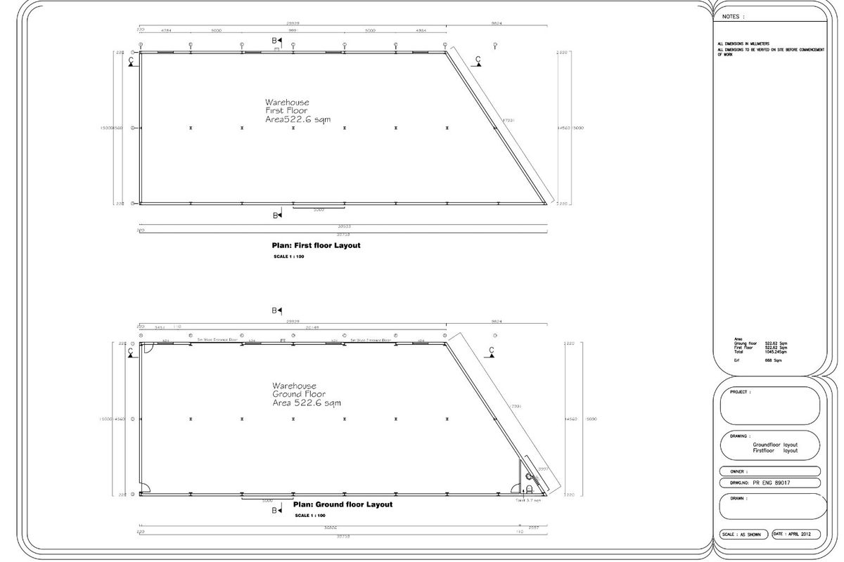 Building has two levels 500m2 ground and 500m2 first floor