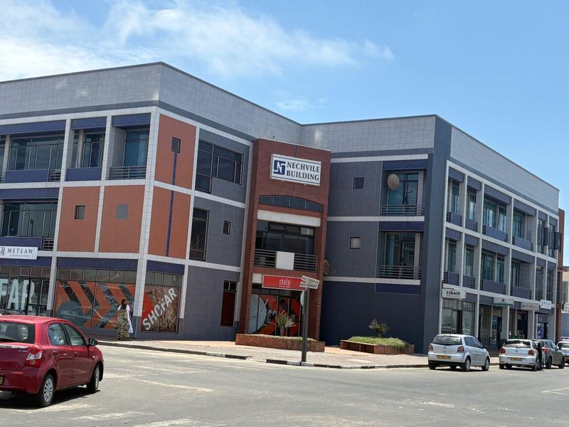Thrive in Walvis Bay CBD with this stylish 90 m² office offering private AC offices, reception, shared kitchenette, lift access and secure basement parking — available immediately.