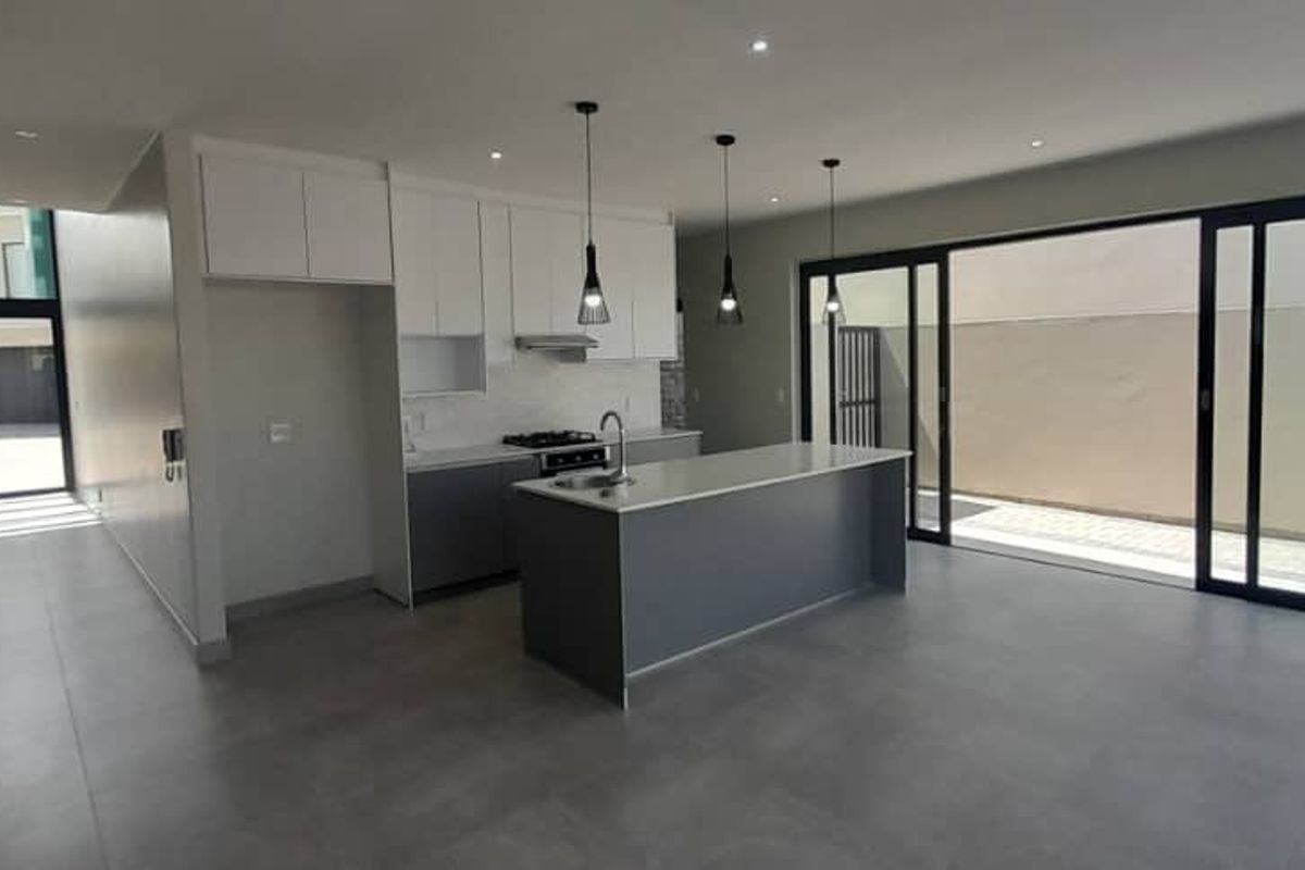 Entertain effortlessly with open-plan living and indoor braai in a neat, secure gated complex; upstairs balcony and walk-in closet add comfort — three bedrooms, 2.5 baths, double garage.