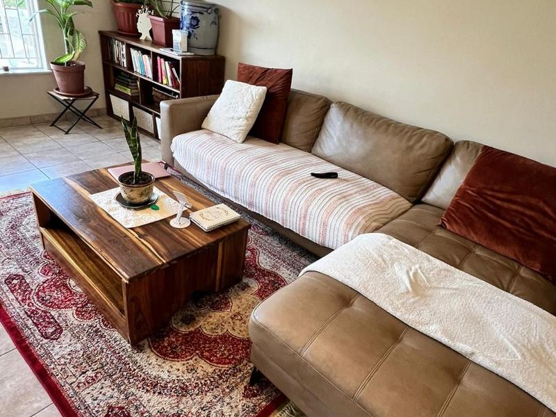 Relaxed urban living in Uhland Heights, Klein Windhoek: fully furnished two-bedroom, two-bath apartment with bright open-plan lounge, north-facing balcony, added security and private garage with covered parking.