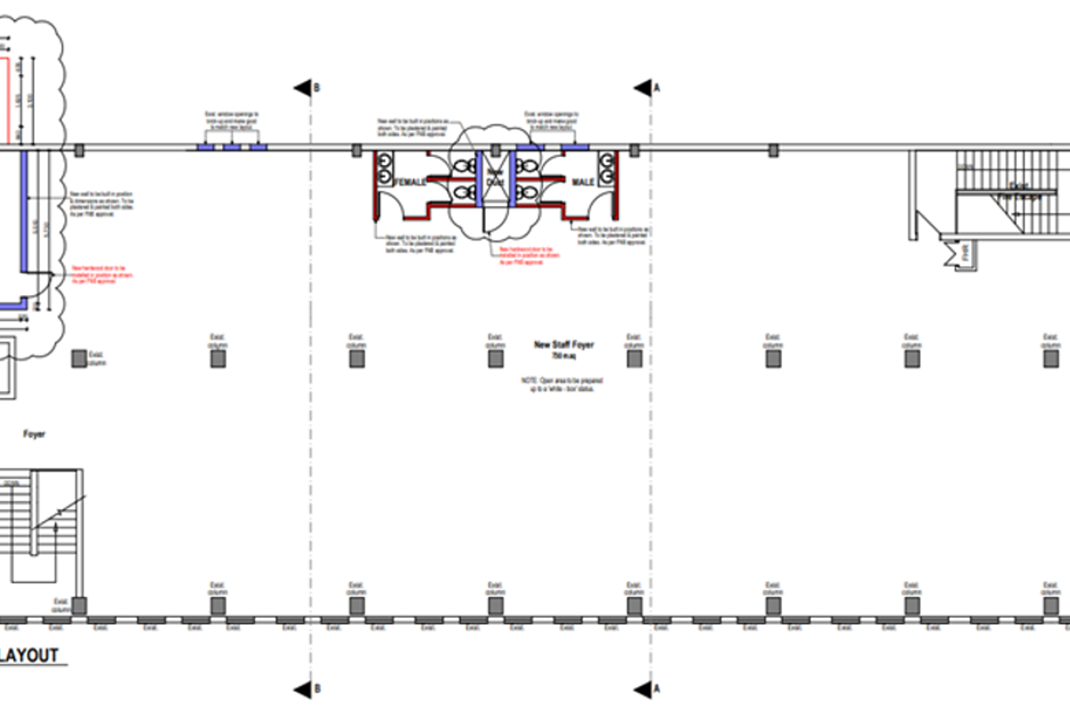 Vibrant city-centre workspace ideal for scaling teams, offering a fully furnished call-centre layout, wheelchair access and ten parking bays — 737 m² on the first floor.