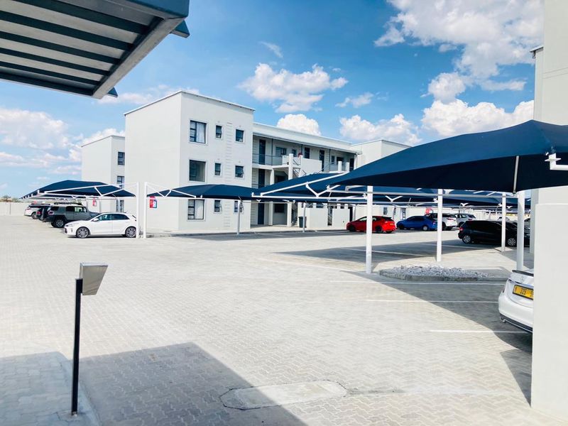 Enjoy low-cost, modern living in central Ehenye, Oshakati — steps from Oyetu and Etango malls, with communal braai areas, playgrounds and solar-assisted geysers; two-bed, one-bath, covered parking.