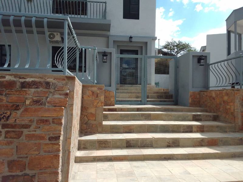 Relax in urban comfort in Klein Windhoek — leafy, convenient setting with a private covered rooftop terrace for entertaining. Newly renovated, fully furnished three-storey home with four bedrooms and pool.