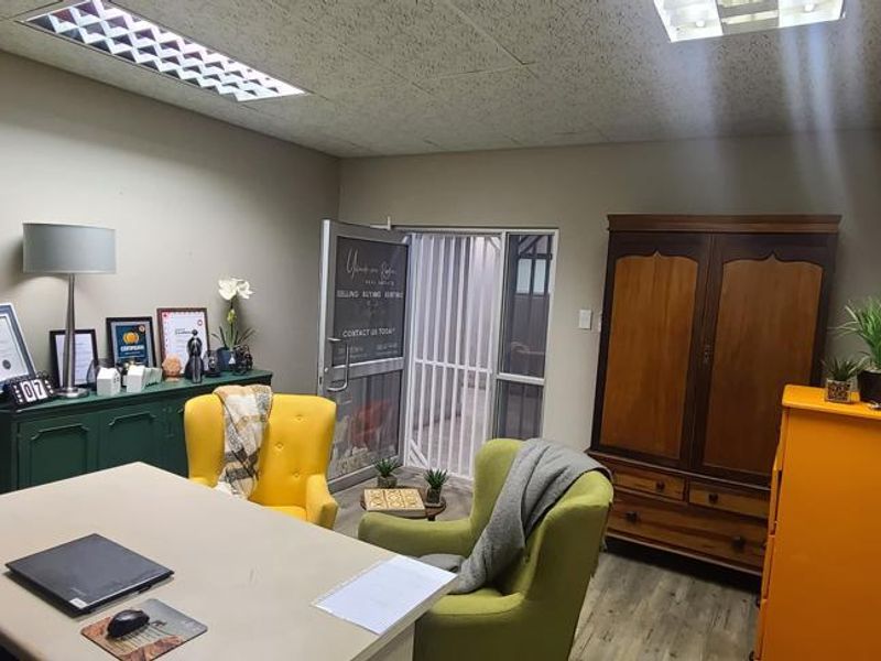 Centrally located, steps from transport and amenities — ideal base for a small business or consultancy, with reception, private office, kitchenette and secure parking; 40 m², N$10,800/month.
