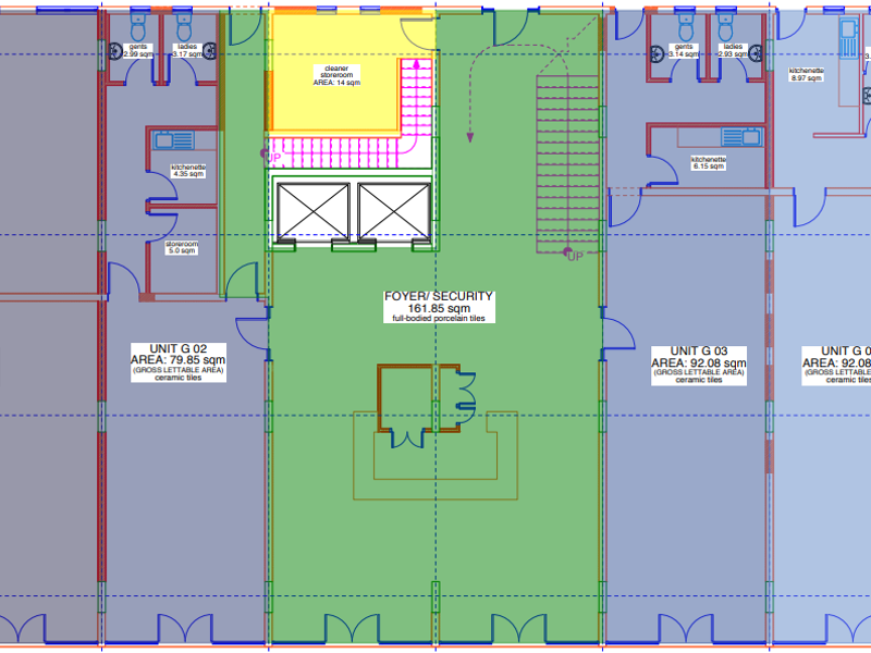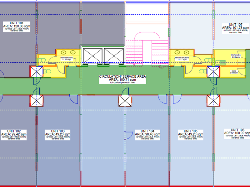 358 m² office space on 1st floor with 12 offices, reception, lounge, kitchenette, store, and ablution facilities. Immediate occupation.