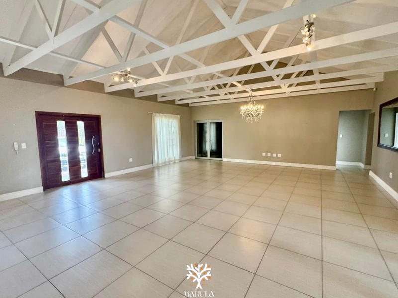 Entertainer's oasis in Eros, Windhoek — indoor-outdoor flow to a large veranda, boma and splash pool for gatherings; includes a 3-bed main house, 1-bed flat and double garage.