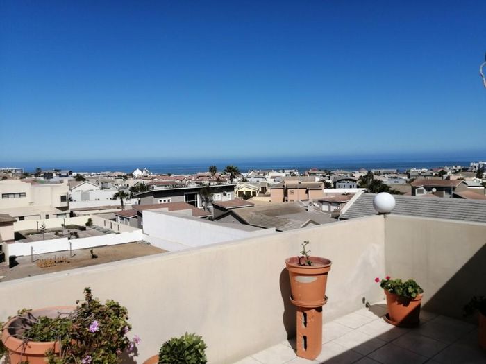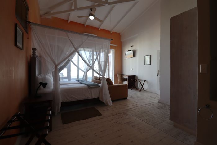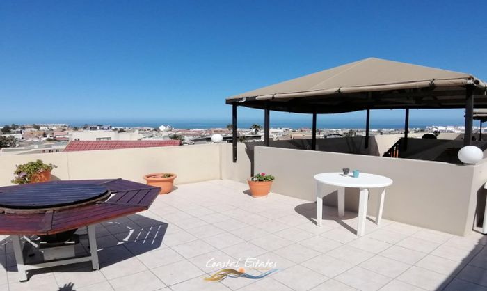 Seafront Swakopmund guesthouse with panoramic ocean views, pool-side decks and rooftop sun-deck with BBQ — ten en‑suite rooms, indoor bar, garden access and parking.
