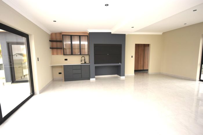 Entertain effortlessly in a brand-new home with open-plan living and built-in braai, set in a quiet, secure neighbourhood near shops — three ensuites, double garage.