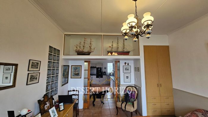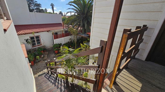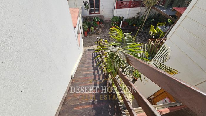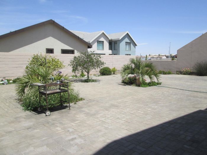 Peaceful cul-de-sac living in Extension 9, Swakopmund with rooftop flat enjoying north-west sunset balcony. Dual indoor braai, established garden and three-bed main house with two baths, triple garage.