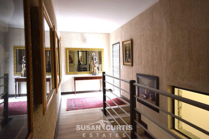 Entertainer's paradise with indoor and outdoor braais, sunroom and scullery, set in a peaceful suburban 1000 m² plot. Includes a bachelor flat, three bedrooms, two bathrooms, and four garages.
