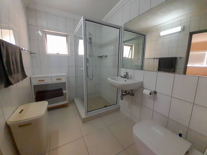 Breezy Vogelstrand location, steps to beach and Platz Se Mere Mall, sea views from upstairs and an entertainment room with built-in braai and wine cooler. Four en-suite bedrooms, three garages.