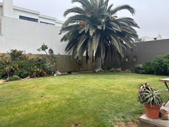 Compound by Walvis Bay Lagoon, walking distance to amenities, featuring an indoor‑BBQ entertainment area, garden with kiddies jungle gym and a self‑contained two‑bed flat — five beds, four baths, four garages.