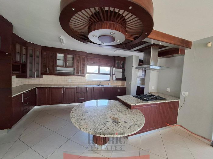 Entertainer’s retreat steps from the lagoon, with indoor fireplace and BBQ flowing to a covered stoep, heated pool, balcony views, scullery and pantry — three bedrooms, two baths, four garages.