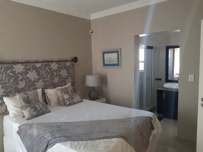 Family-friendly home within walking distance to the lagoon, schools and town — modern kitchen, indoor braai and upstairs office; two bedrooms with balcony, private garden, two garages, three baths.