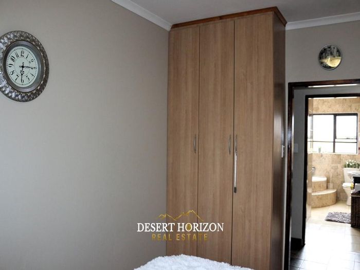 Spacious 3-bedroom home with a 1-bedroom flat, security features, modern amenities, and a well-maintained garden in Walvis Bay.
