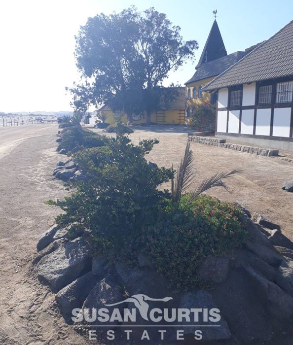 Operate and reside in central Swakopmund CBD — high-visibility property with triple street frontage, adaptable for retail or offices; includes five bedrooms, four bathrooms and three garages.