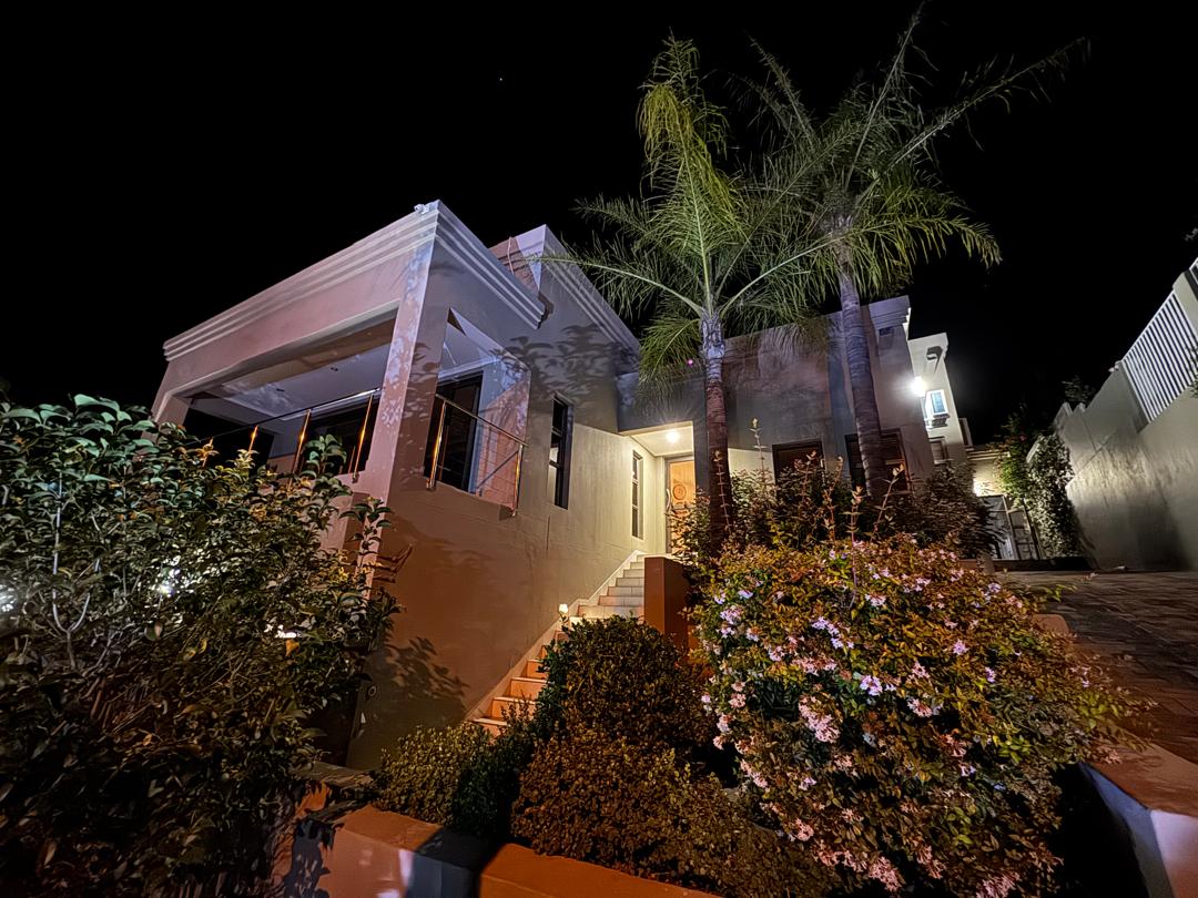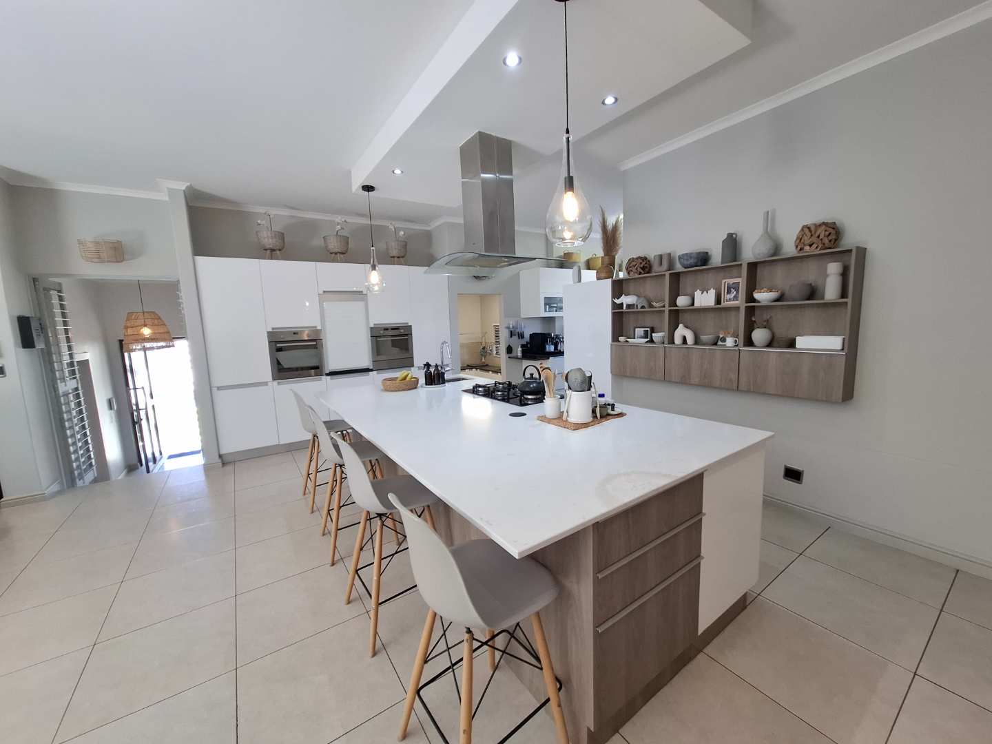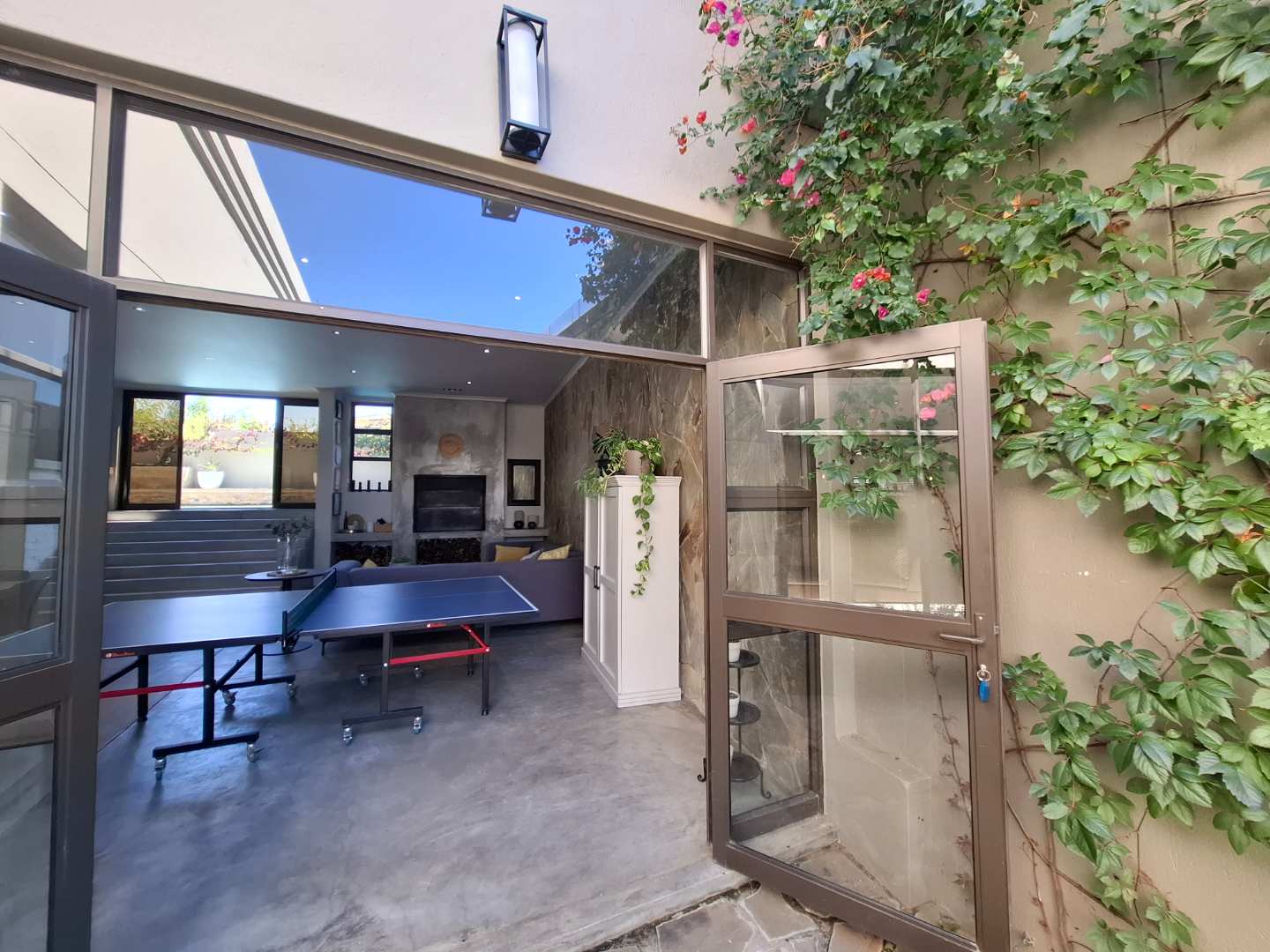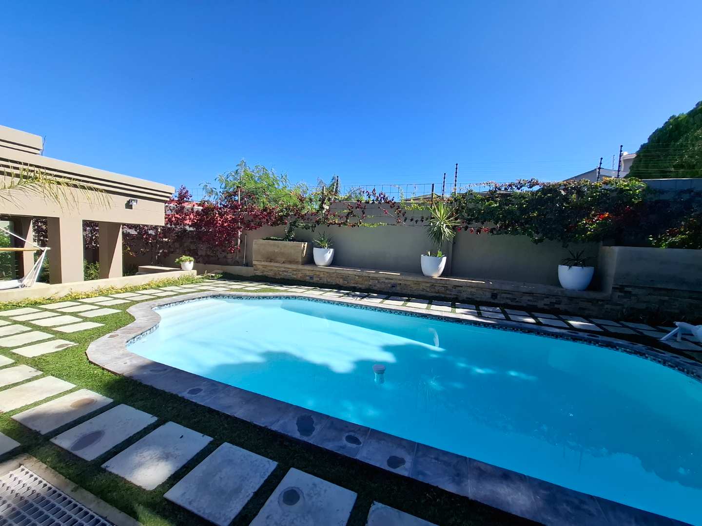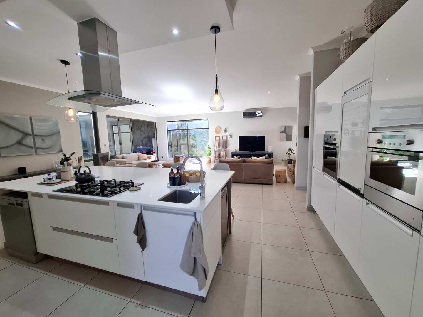 This spectacular home is the epitome of luxury living, beautifully finished and move-in ready, it looks like something straight out of a magazine. Boasting four spacious bedrooms and four bathrooms, three of the bedrooms are en-suite and air-conditioned, offering ultimate comfort and privacy. The master suite is truly impressive, featuring a walk-in closet, a luxurious full bathroom, and direct access to the pool area, creating a private retreat within your own home. The children’s bedrooms are thoughtfully designed with built-in study desks, making homework and study time effortless. The open-plan living area is expansive, filled with natural light, and features both air-conditioning and a slow-combustion fireplace for year-round comfort. At the heart of the home is a designer kitchen with natural stone countertops, integrated appliances, and an exceptionally large scullery — ideal for modern family living. The living space flows seamlessly into a rustic-style entertainment room with a built-in BBQ, which opens up to a beautifully landscaped garden and a heated pool — perfect for relaxing or entertaining guests. A second, private gate allows visitors direct access to the entertainment area without disturbing the main house. Additional features include a separate TV lounge with its own balcony and stunning views — perfect as a teen lounge or informal media room — as well as a fully fitted home office that makes working from home a pleasure. The property offers a double garage with direct access into the house, along with extra off-street parking for up to four cars. Security is top-notch and embassy-approved, ensuring peace of mind. The low-maintenance erf adds to the appeal, making this an ideal lock-up-and-go home for families or professionals seeking a refined lifestyle in a premium setting.