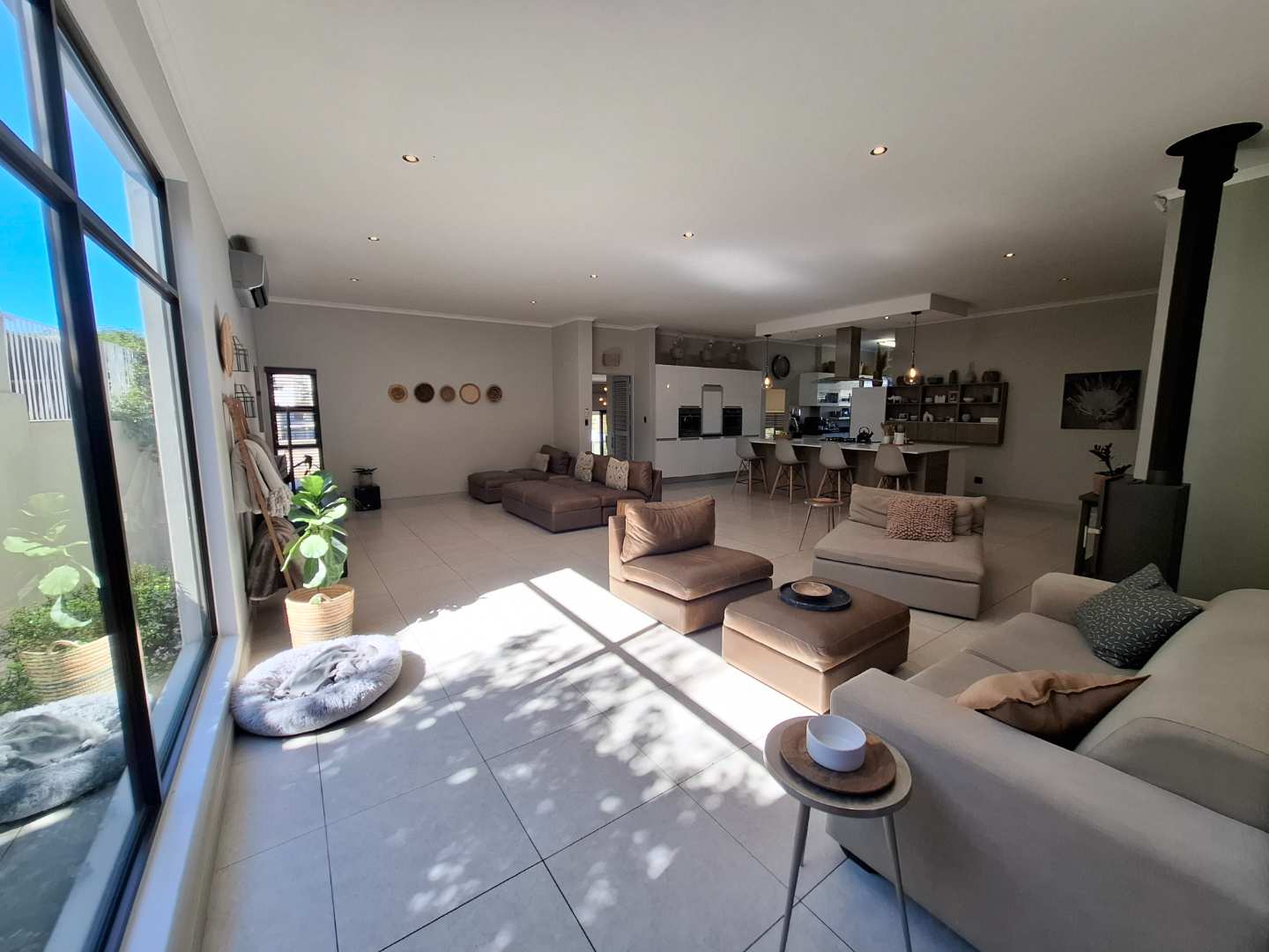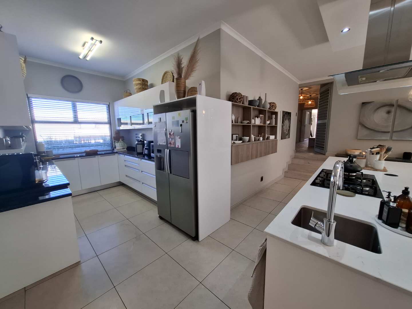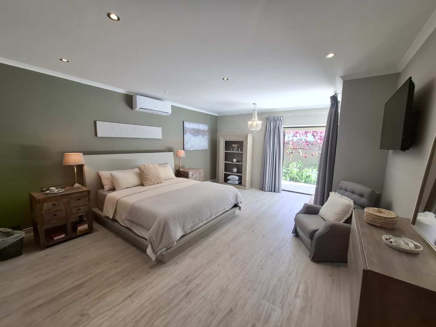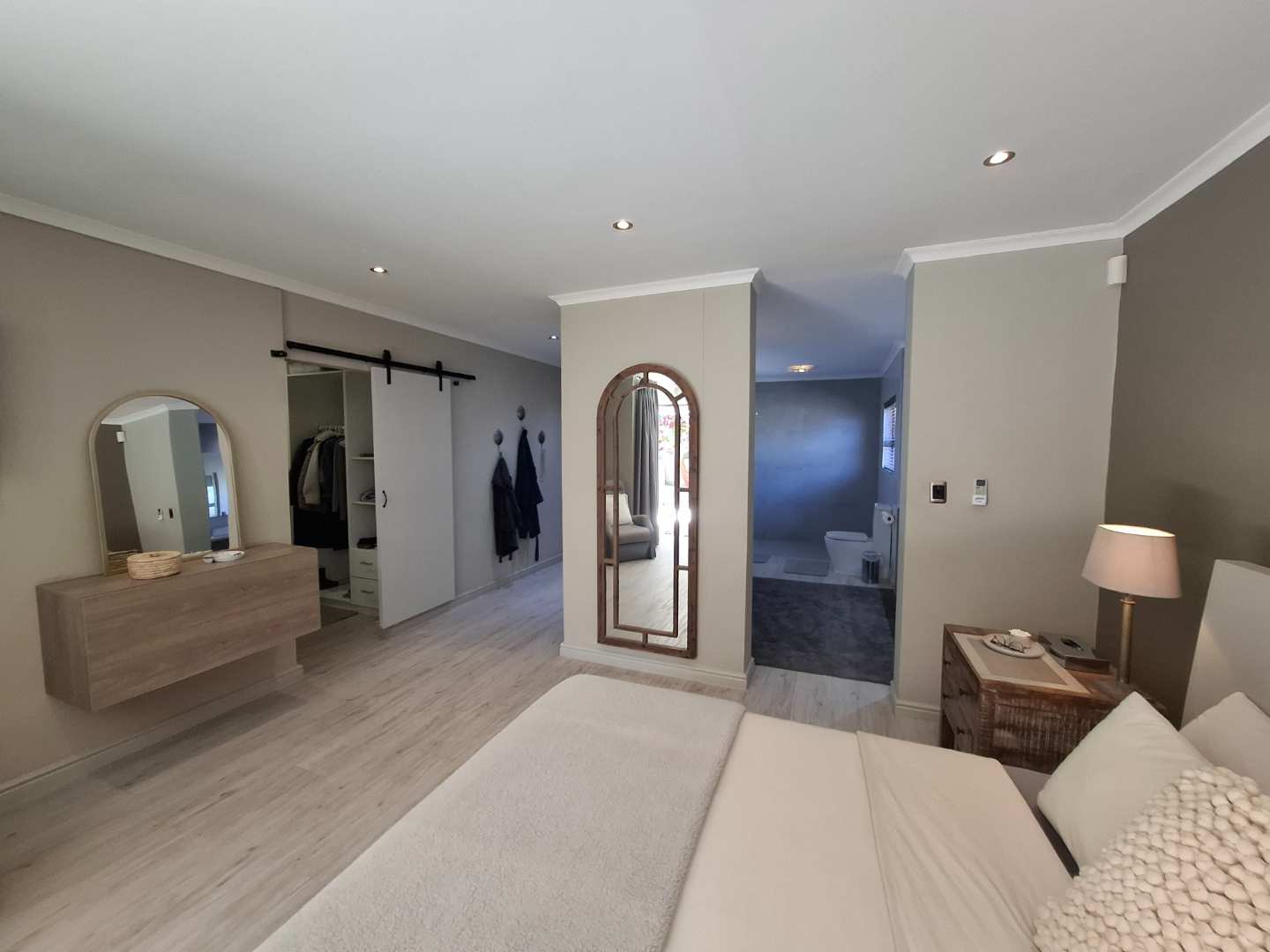 This spectacular home is the epitome of luxury living, beautifully finished and move-in ready, it looks like something straight out of a magazine. Boasting four spacious bedrooms and four bathrooms, three of the bedrooms are en-suite and air-conditioned, offering ultimate comfort and privacy. The master suite is truly impressive, featuring a walk-in closet, a luxurious full bathroom, and direct access to the pool area, creating a private retreat within your own home. The children’s bedrooms are thoughtfully designed with built-in study desks, making homework and study time effortless. The open-plan living area is expansive, filled with natural light, and features both air-conditioning and a slow-combustion fireplace for year-round comfort. At the heart of the home is a designer kitchen with natural stone countertops, integrated appliances, and an exceptionally large scullery — ideal for modern family living. The living space flows seamlessly into a rustic-style entertainment room with a built-in BBQ, which opens up to a beautifully landscaped garden and a heated pool — perfect for relaxing or entertaining guests. A second, private gate allows visitors direct access to the entertainment area without disturbing the main house. Additional features include a separate TV lounge with its own balcony and stunning views — perfect as a teen lounge or informal media room — as well as a fully fitted home office that makes working from home a pleasure. The property offers a double garage with direct access into the house, along with extra off-street parking for up to four cars. Security is top-notch and embassy-approved, ensuring peace of mind. The low-maintenance erf adds to the appeal, making this an ideal lock-up-and-go home for families or professionals seeking a refined lifestyle in a premium setting.