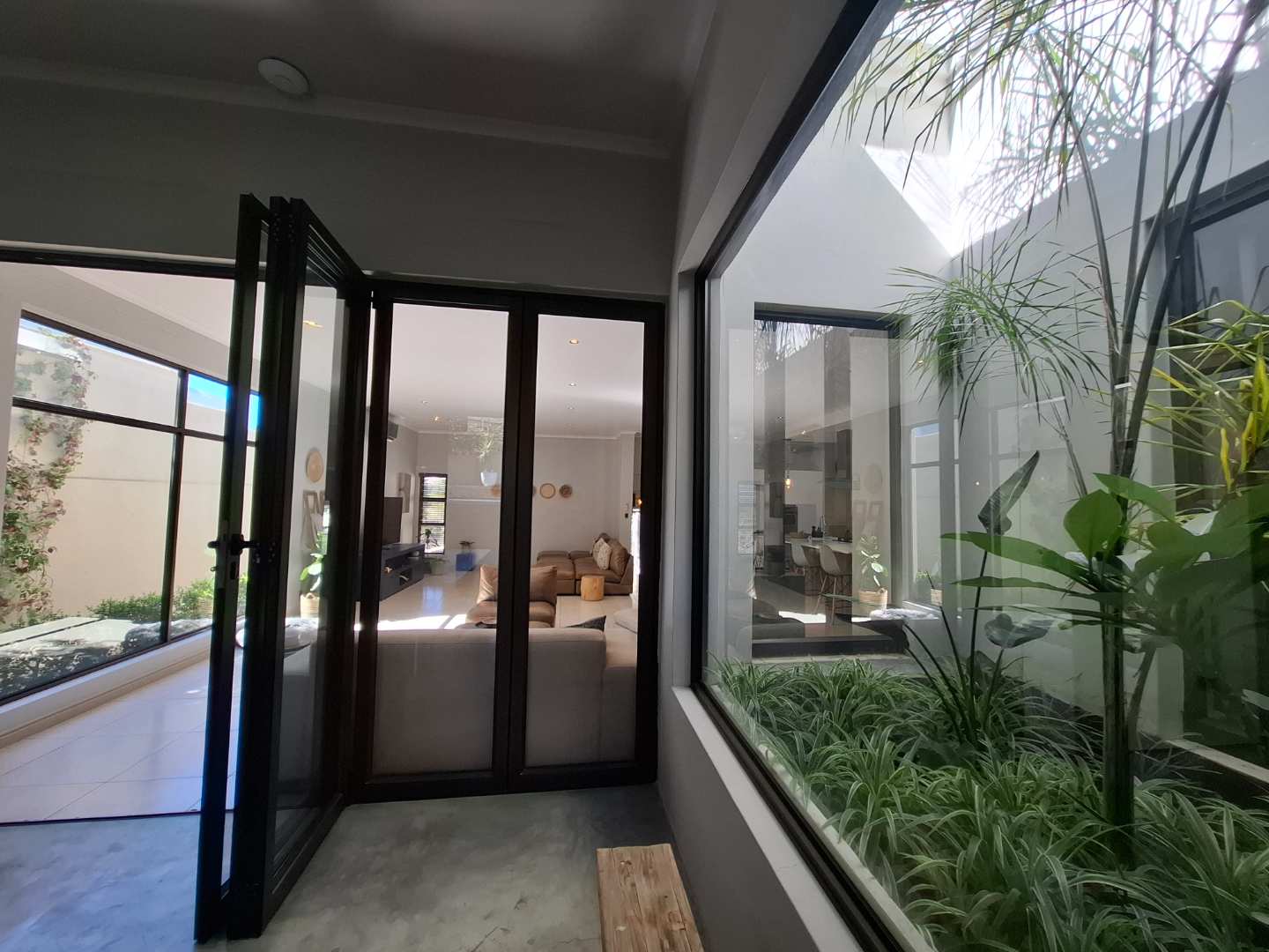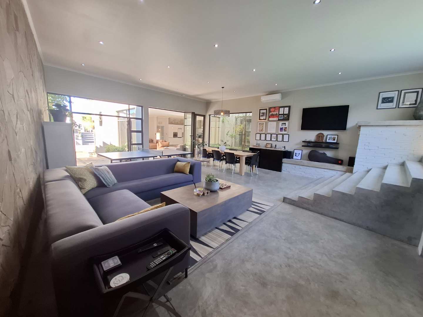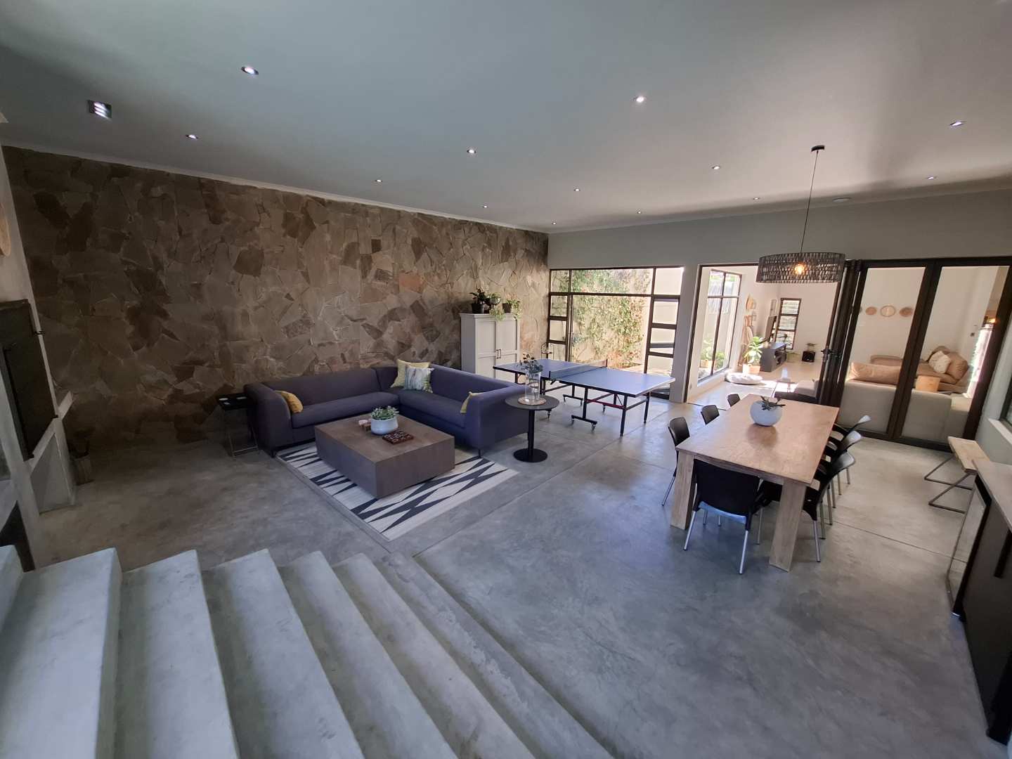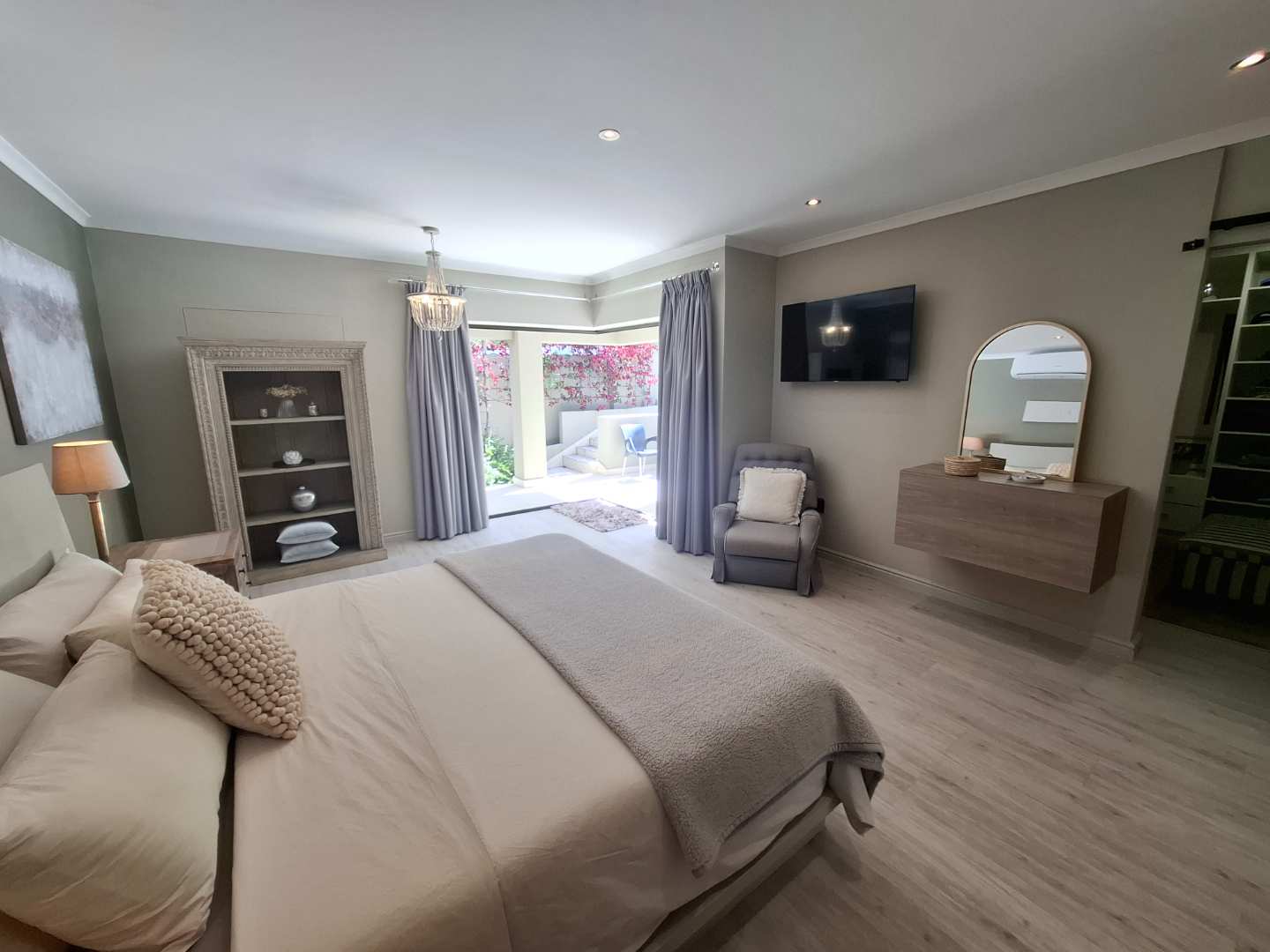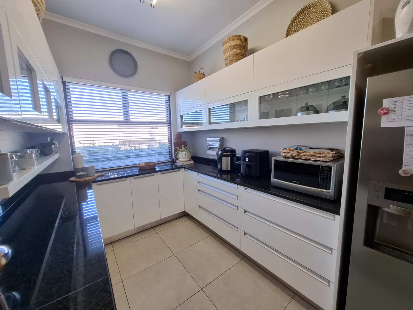 This spectacular home is the epitome of luxury living, beautifully finished and move-in ready, it looks like something straight out of a magazine. Boasting four spacious bedrooms and four bathrooms, three of the bedrooms are en-suite and air-conditioned, offering ultimate comfort and privacy. The master suite is truly impressive, featuring a walk-in closet, a luxurious full bathroom, and direct access to the pool area, creating a private retreat within your own home. The children’s bedrooms are thoughtfully designed with built-in study desks, making homework and study time effortless. The open-plan living area is expansive, filled with natural light, and features both air-conditioning and a slow-combustion fireplace for year-round comfort. At the heart of the home is a designer kitchen with natural stone countertops, integrated appliances, and an exceptionally large scullery — ideal for modern family living. The living space flows seamlessly into a rustic-style entertainment room with a built-in BBQ, which opens up to a beautifully landscaped garden and a heated pool — perfect for relaxing or entertaining guests. A second, private gate allows visitors direct access to the entertainment area without disturbing the main house. Additional features include a separate TV lounge with its own balcony and stunning views — perfect as a teen lounge or informal media room — as well as a fully fitted home office that makes working from home a pleasure. The property offers a double garage with direct access into the house, along with extra off-street parking for up to four cars. Security is top-notch and embassy-approved, ensuring peace of mind. The low-maintenance erf adds to the appeal, making this an ideal lock-up-and-go home for families or professionals seeking a refined lifestyle in a premium setting.