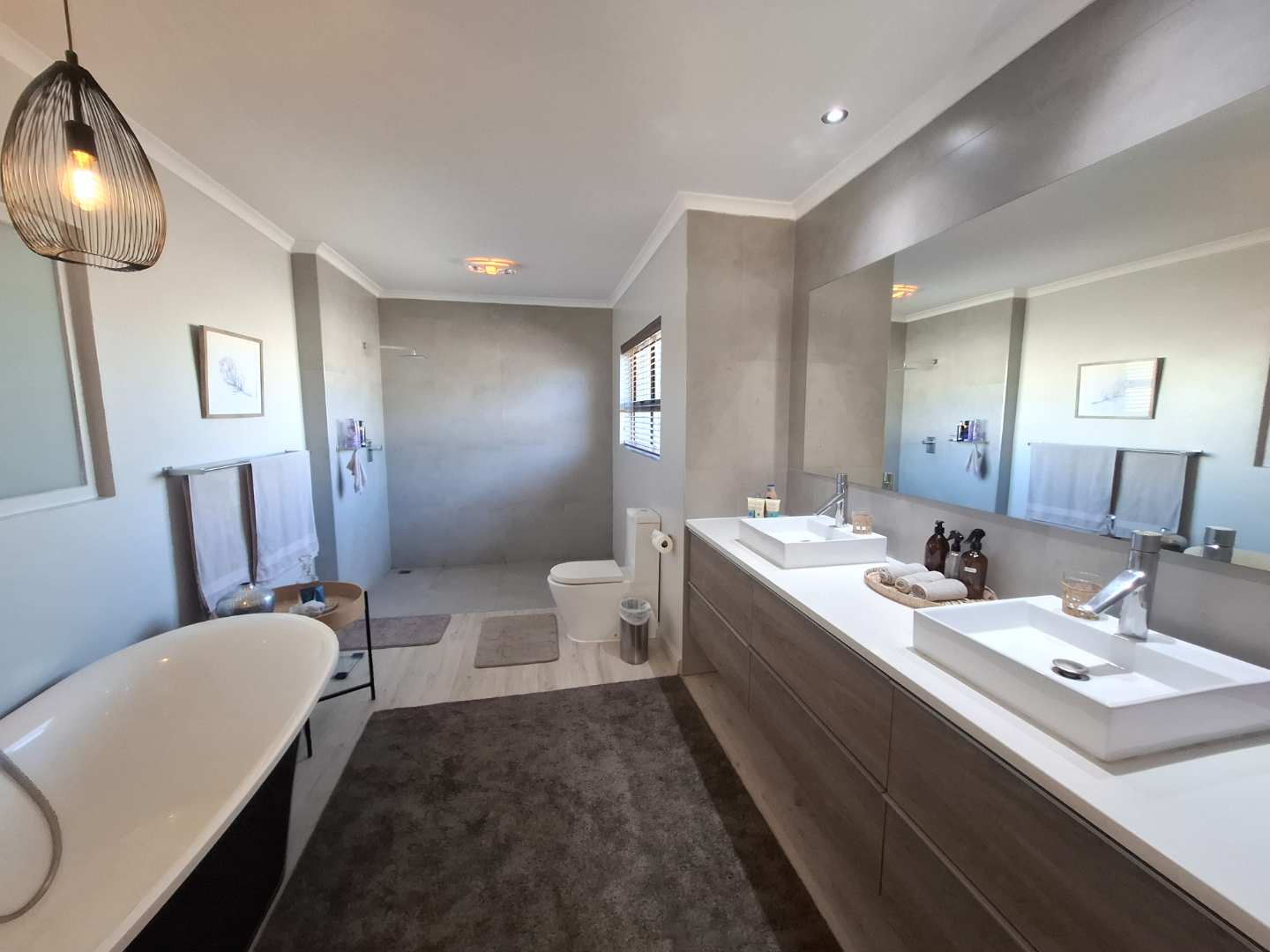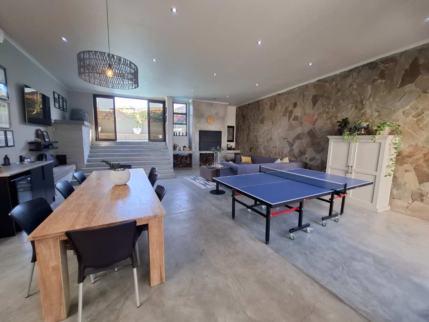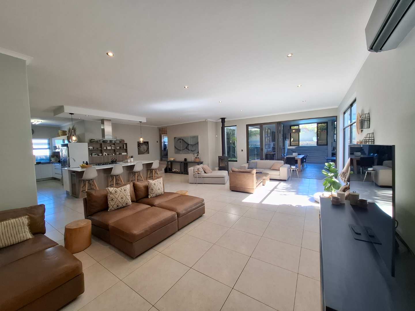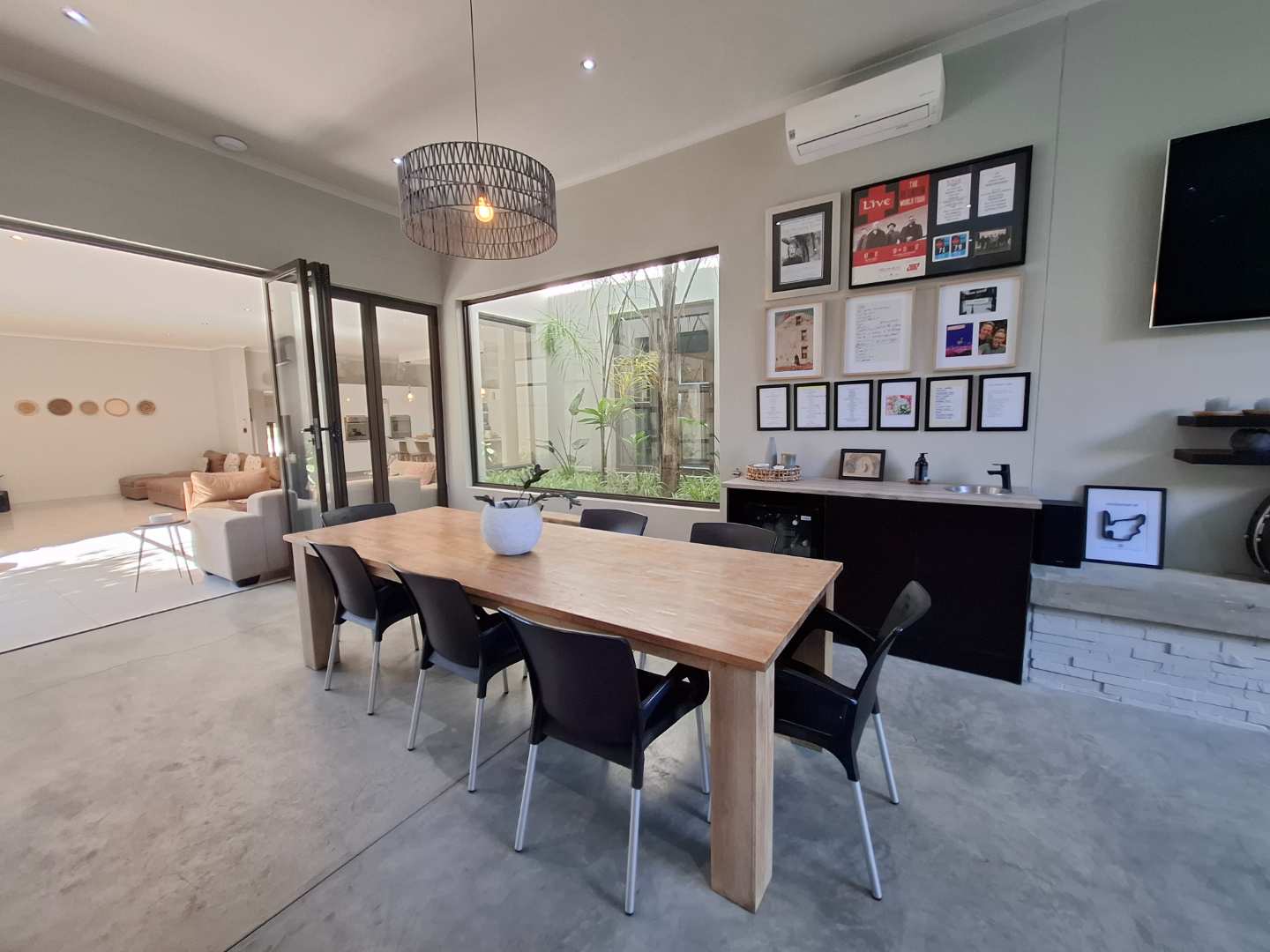 This spectacular home is the epitome of luxury living, beautifully finished and move-in ready, it looks like something straight out of a magazine. Boasting four spacious bedrooms and four bathrooms, three of the bedrooms are en-suite and air-conditioned, offering ultimate comfort and privacy. The master suite is truly impressive, featuring a walk-in closet, a luxurious full bathroom, and direct access to the pool area, creating a private retreat within your own home. The children’s bedrooms are thoughtfully designed with built-in study desks, making homework and study time effortless. The open-plan living area is expansive, filled with natural light, and features both air-conditioning and a slow-combustion fireplace for year-round comfort. At the heart of the home is a designer kitchen with natural stone countertops, integrated appliances, and an exceptionally large scullery — ideal for modern family living. The living space flows seamlessly into a rustic-style entertainment room with a built-in BBQ, which opens up to a beautifully landscaped garden and a heated pool — perfect for relaxing or entertaining guests. A second, private gate allows visitors direct access to the entertainment area without disturbing the main house. Additional features include a separate TV lounge with its own balcony and stunning views — perfect as a teen lounge or informal media room — as well as a fully fitted home office that makes working from home a pleasure. The property offers a double garage with direct access into the house, along with extra off-street parking for up to four cars. Security is top-notch and embassy-approved, ensuring peace of mind. The low-maintenance erf adds to the appeal, making this an ideal lock-up-and-go home for families or professionals seeking a refined lifestyle in a premium setting.