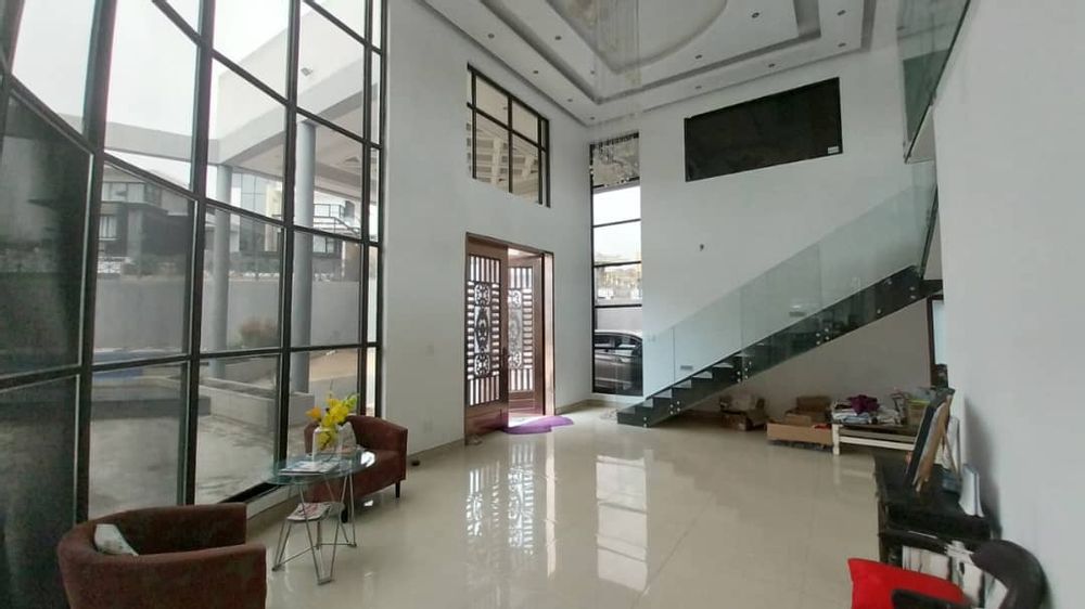 The home boasts five bedrooms, including a full en‐suite bathroom for added privacy. Additional sanitary facilities include 4 shower/WC/basin rooms, one full bathroom, a guest toilet, and a separate WC, making it ideal for a large household. A dressing room and hobby room further enhance the interior offering. Movement throughout the upper level is supported by a functional landing area, while three balconies provide outdoor relaxation spaces with elevated views.