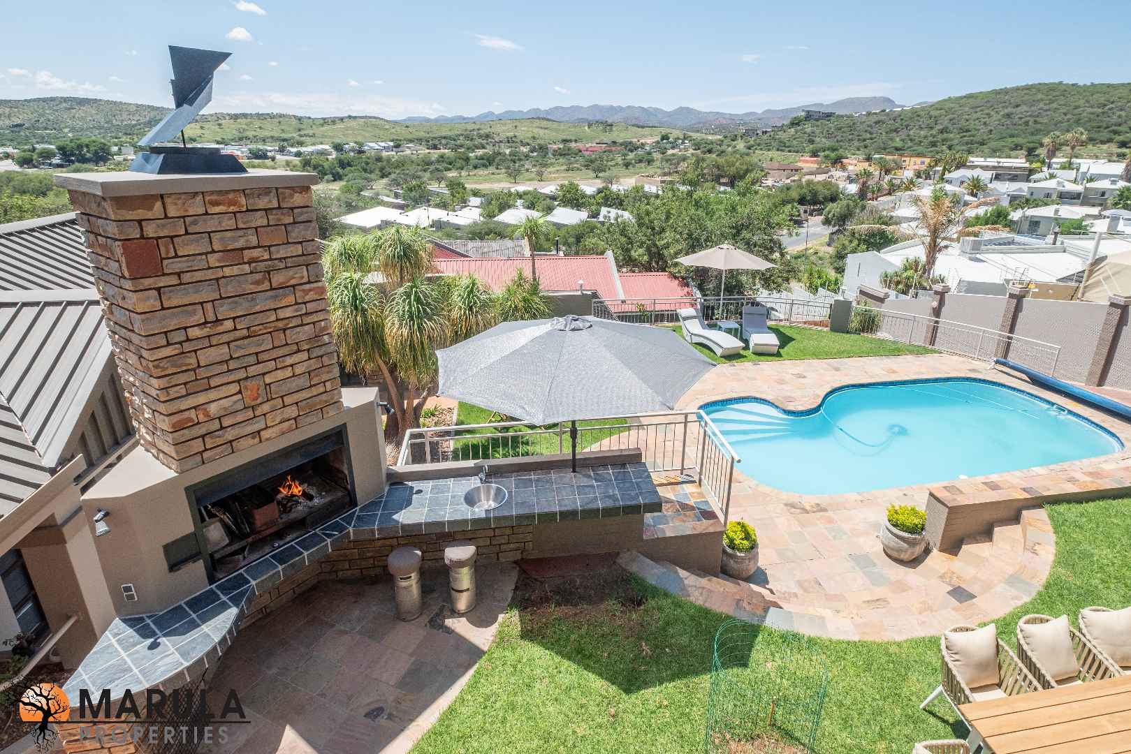 Exquisite 3-Story Home with Breathtaking Views in Klein Windhoek/Avis. Nestled in the serene charm of Michaelis Street, this remarkable three-story house offers unparalleled vistas of the Windhoek mountains from every level. Boasting a generous floor size of 670sqm and sitting on a spacious land size of 1684sqm, this property presents a rare opportunity for luxurious living in an idyllic setting.