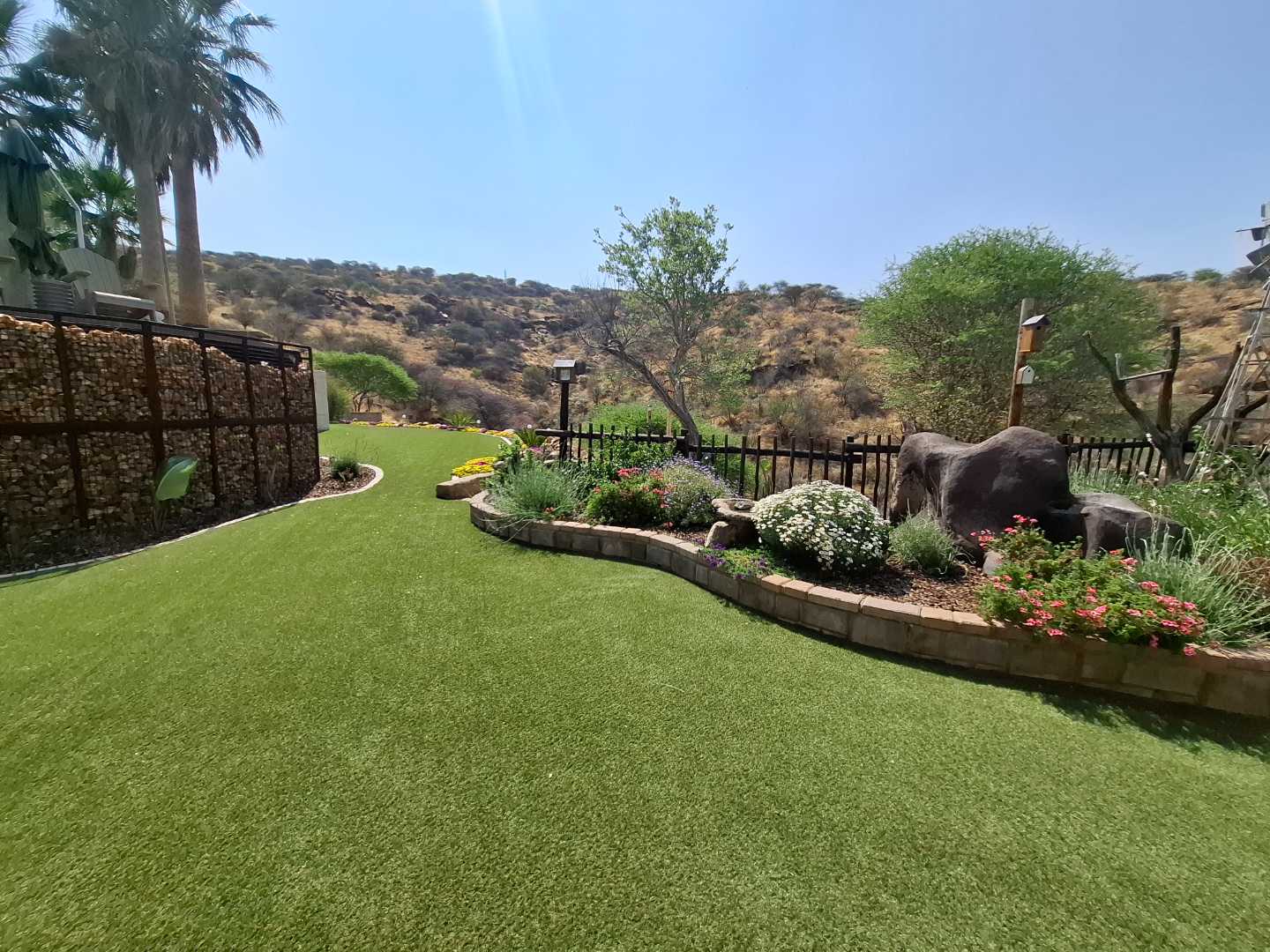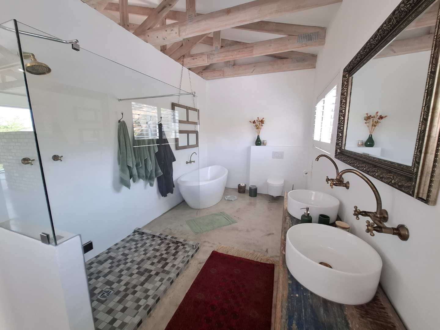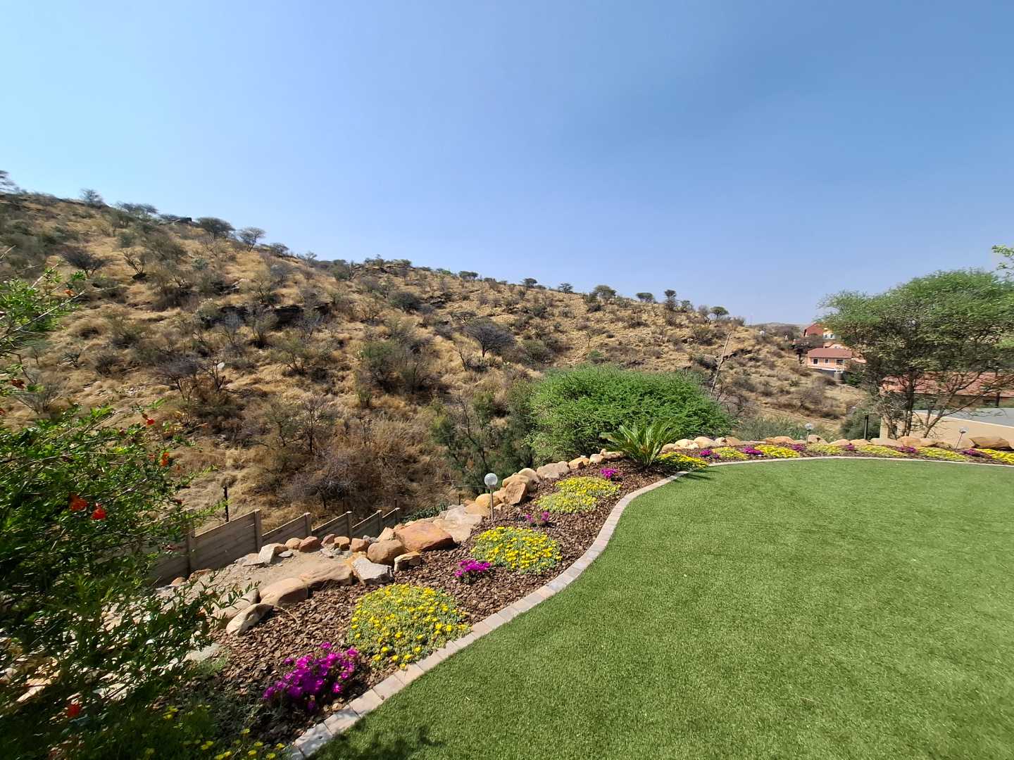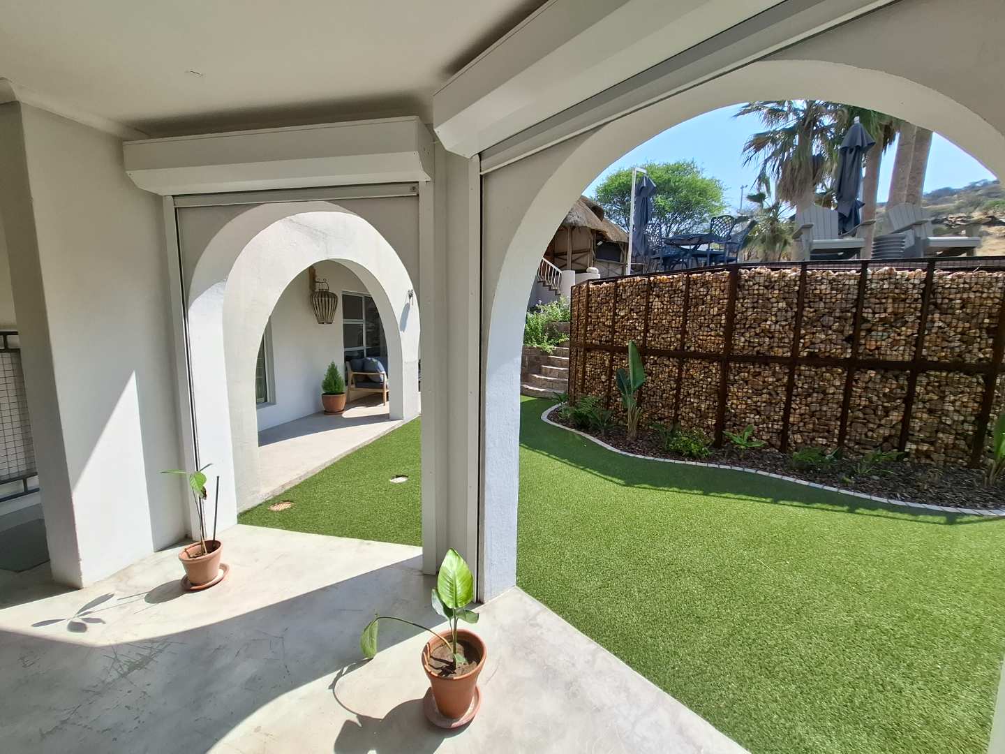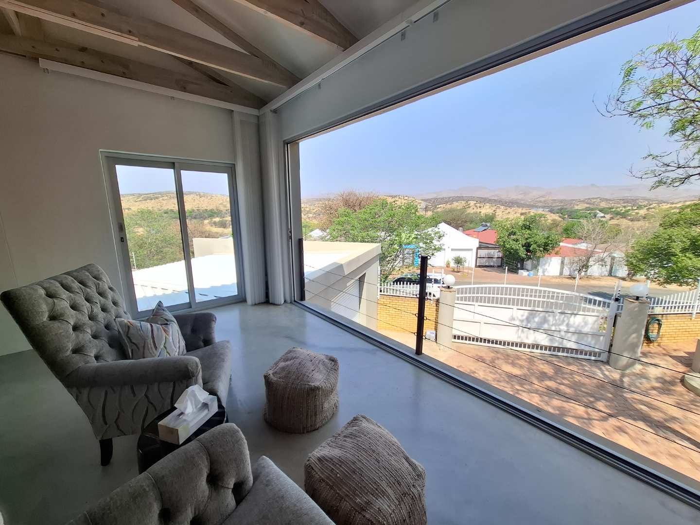 Set in a quiet cul-de-sac and meticulously maintained to exacting German standards, this move-in-ready residence offers the perfect blend of luxury, privacy, and functionality. Elevated to take full advantage of the panoramic views, the home boasts top-quality, earthy finishes throughout. The property features four generously sized bedrooms and three full bathrooms, with two en-suite bedrooms. The master suite is truly exceptional—stack-away doors on both sides open up to unparalleled views, creating an atmosphere that rivals the most luxurious honeymoon suite. The en-suite bathroom is equally impressive, offering a double vanity, oversized shower, freestanding bath, and a walk-in dressing room. An upstairs study also enjoys sweeping vistas, while a guest cloakroom adds convenience on the ground floor. The farm-style kitchen is the heart of the home, equipped with a freestanding gas stove and a spacious scullery/laundry area. Expansive, open-plan living areas are air-conditioned and centered around a cozy fireplace. Stack-away doors open fully to the outdoors, allowing for seamless indoor-outdoor flow and an immersive connection with nature. A separate TV room provides a dedicated space for family entertainment. The covered patio, featuring a large built-in BBQ, overlooks a beautifully landscaped garden and expansive deck surrounding a heated pool—ideal for sundowners, weekend gatherings, or relaxed family time. Mature palm trees add to the tranquil ambiance. For guests, a fifth bedroom in African tented style—complete with its own en-suite bathroom—offers a unique and luxurious retreat. Additional features include: Staff quarters (easily repurposed as a gym), Four garages with a workshop, Multiple storerooms, Wine cellar. Security is outstanding, with a state-of-the-art alarm system, electric fencing, CCTV surveillance, American shutters, and more.