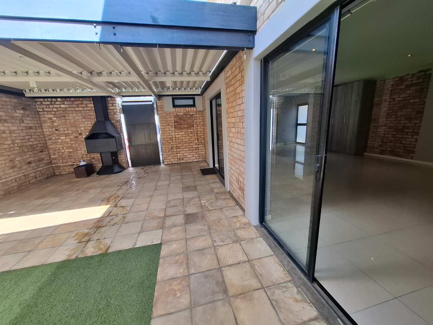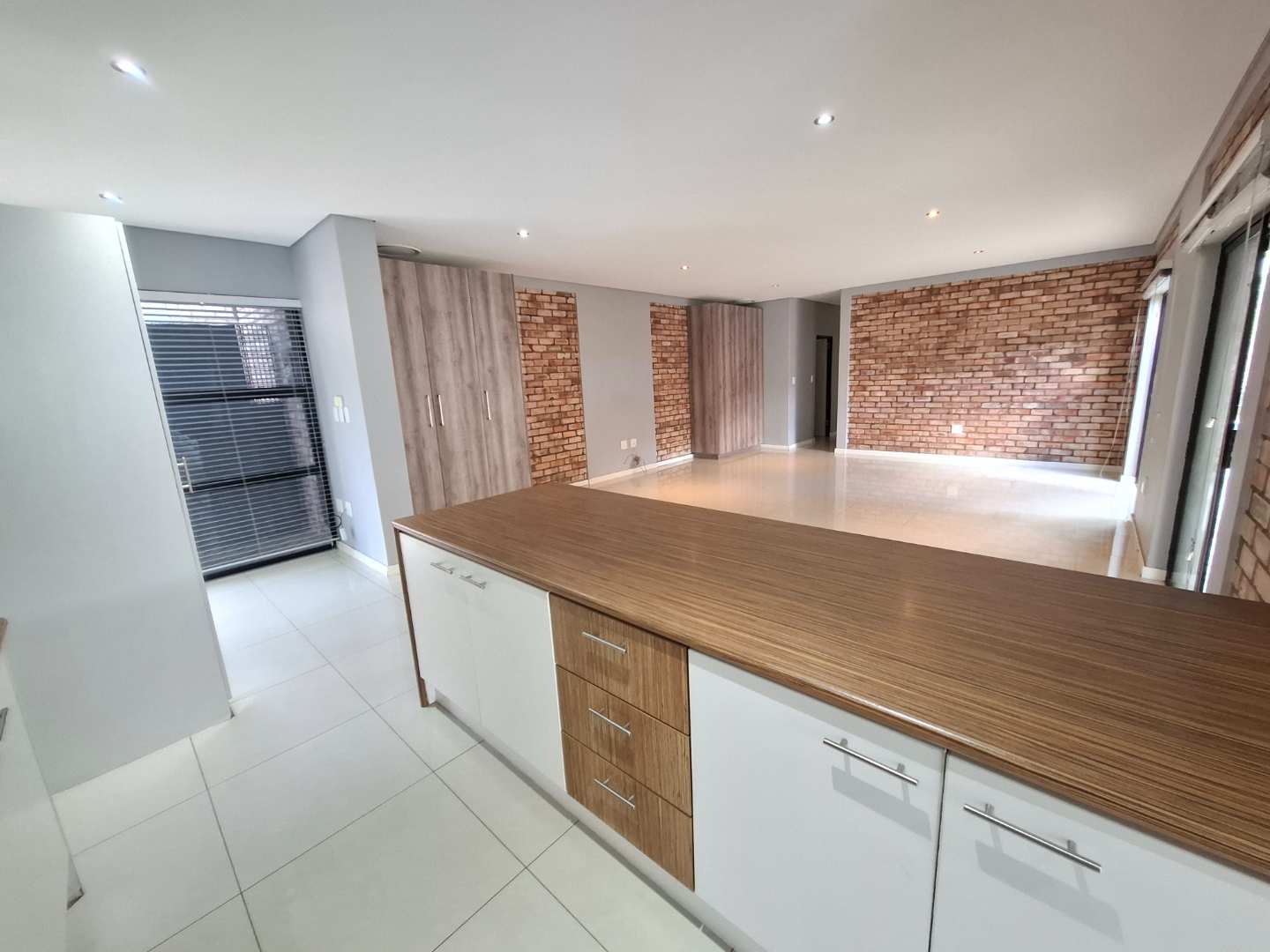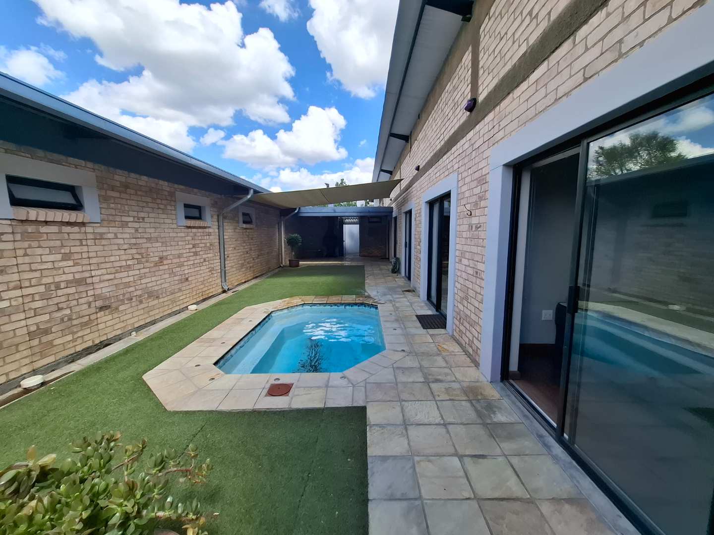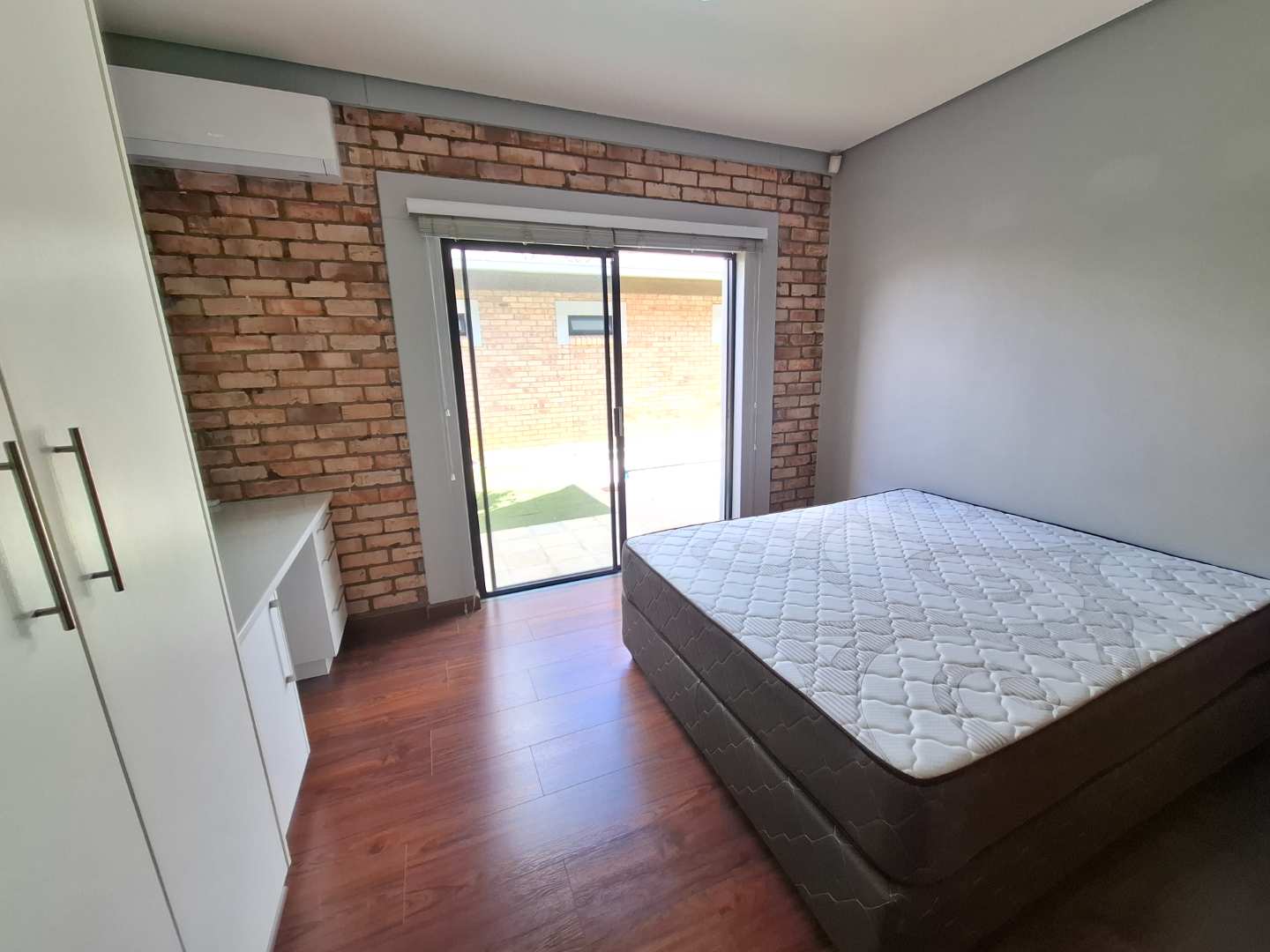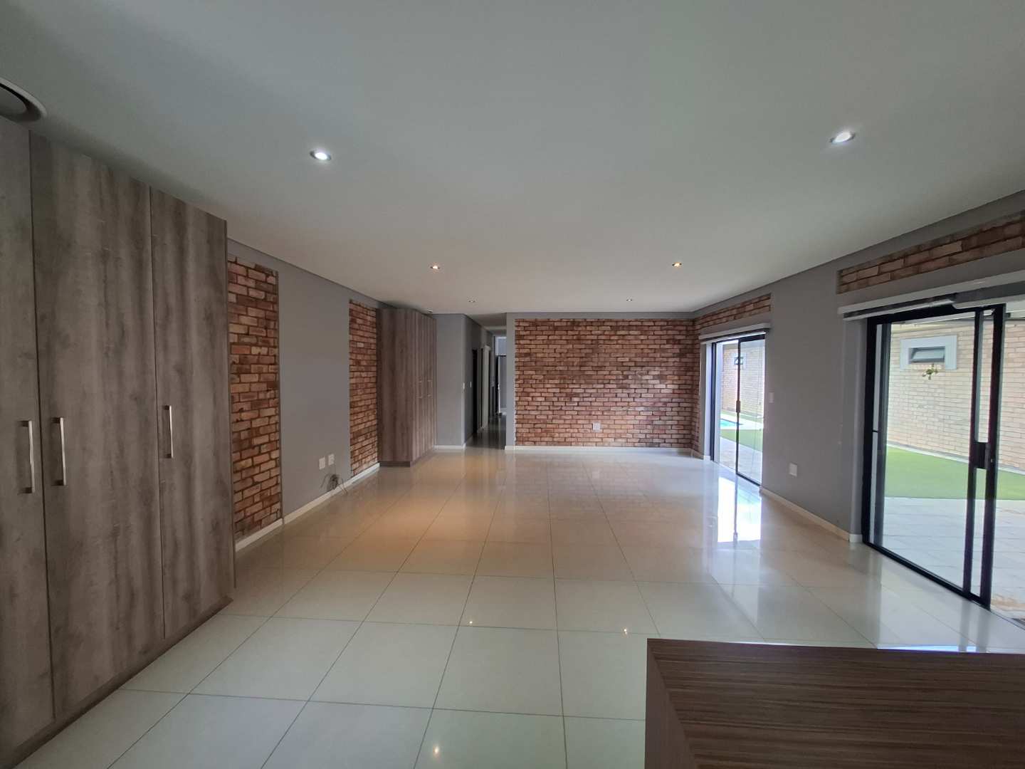 The open-plan living area is designed for seamless indoor-outdoor living, opening out to a private pool and entertainment area. This space is perfect for entertaining, with an adjustable louvre roof and built-in braai, allowing you to enjoy outdoor meals and relaxation in any weather. The living area itself is air-conditioned and features extra built-in cupboards for additional storage.