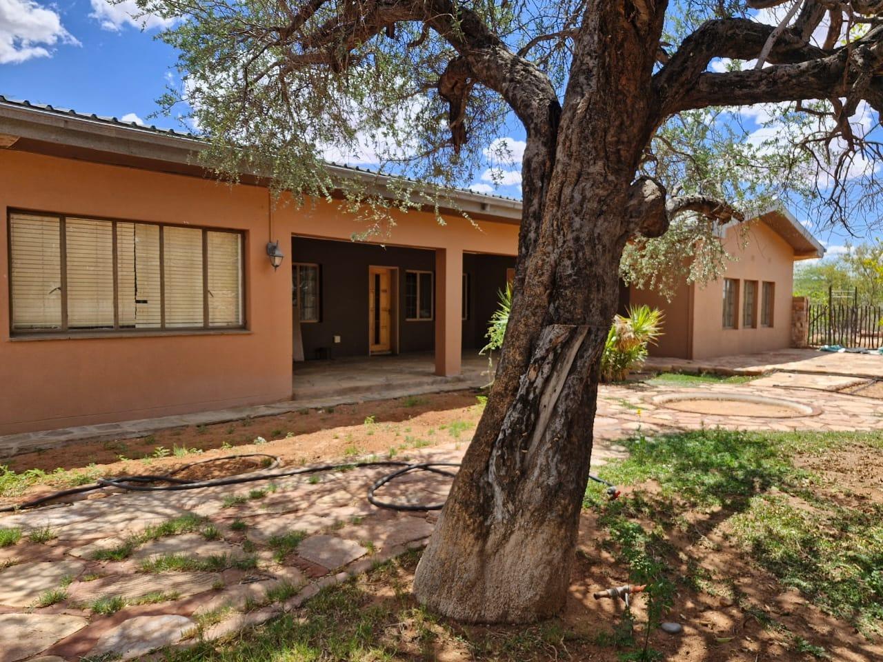 The farm boasts diverse landscapes, including level grass and bush plains, dry riverbeds, dune sands, and medium mountain ranges. The soil types primarily consist of Arenosols, Regosols, and Calcisols. Benefiting from a semi-arid climate with hot summers and cool winters, the property lies within a summer rainfall area receiving approximately 200-250 mm annually. The carrying capacity is approximately 1:4 hectares for small stock units and 1:12 hectares for large stock units.