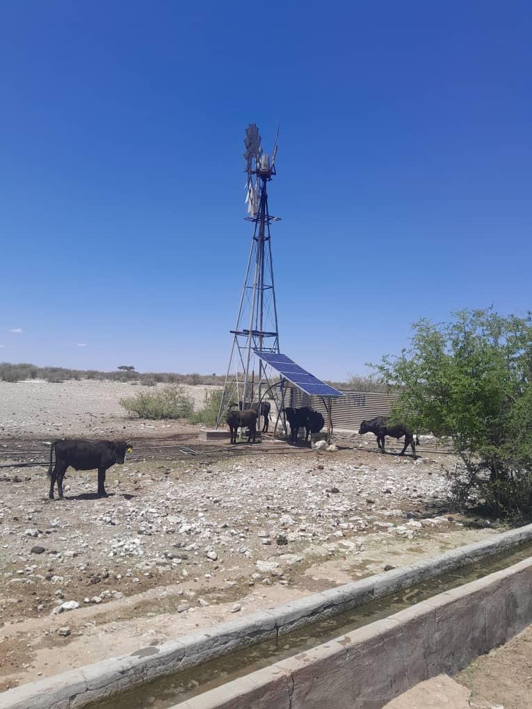 Electricity is supplied by Nampower, while the water infrastructure includes seven boreholes—three with solar pump installations and four with windmills. Additional improvements include two 10,000-liter and twenty 5,000-liter plastic water tanks, alongside ten cement reservoirs. According to the owner, the boreholes provide ample water for all farm activities.