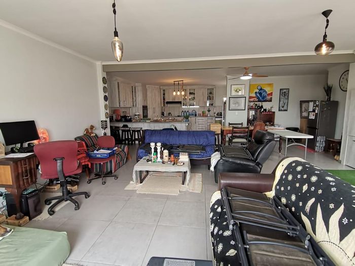 Coastal-themed home with furniture included, ideal for relaxed seaside living; open-plan kitchen and scullery, indoor barbecue and spacious double garage. Three bedrooms, two bathrooms.