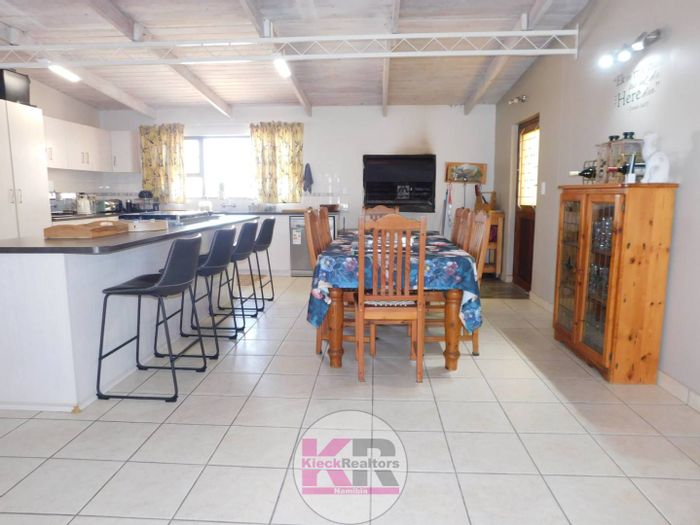 Embrace relaxed coastal living in Henties Bay with open-plan spaces, indoor braai and distant ocean views on a generous corner plot — four bedrooms, three baths and double garage.