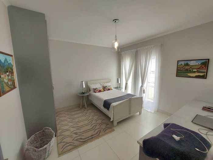 Relaxed family living in a serene neighborhood, with a modern kitchen and built-in braai, 74m² expansion potential and three bedrooms, two bathrooms, double garage.