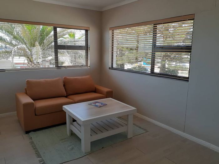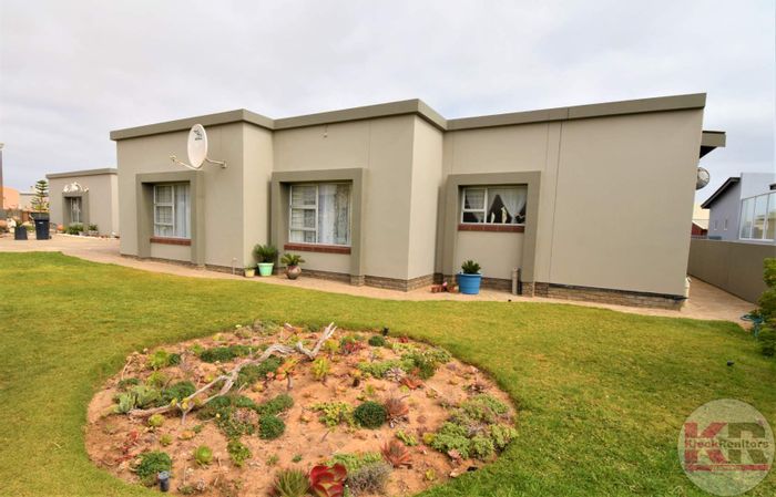 Beachside family retreat in Henties Bay Ext 6 — relaxed coastal living with sunlit open-plan lounge and inside braai area. Four bedrooms, three bathrooms and four garages.