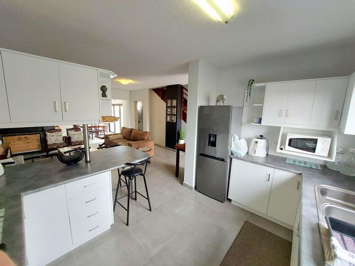 Three bedrooms, two bathrooms, one garage, 128 m² townhouse near the beach with indoor braai and guest toilet.