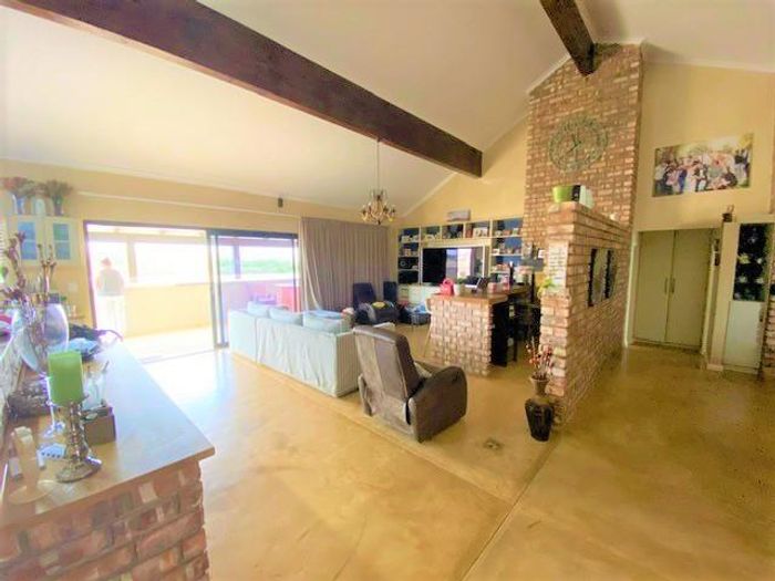 Spacious 3-bed home with en-suite bathrooms, open-plan living, entertainment and study rooms, fireplace, indoor/outdoor braais, viewing deck, and garden.