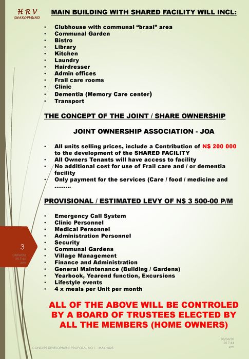 Retirement Village offers full title residential erven, 4 townhouse clusters, and shared community facilities. Prices start at N$1,500,000.