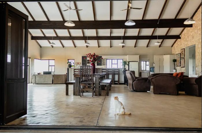 Embrace expansive rural living at Swakop River Plots with riverine calm, solar-powered self-sufficiency and a massive 370sqm chicken coop — two-bedroom main house, two baths, double garage.