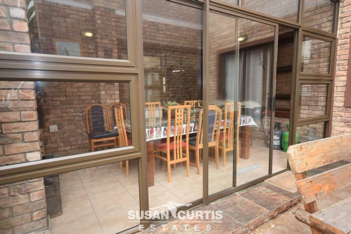 Rustic face-brick family home offers expansive living and entertainer’s flow, braai room to established garden, dual balconies, two-bedroom flat, staff quarter and four garages.