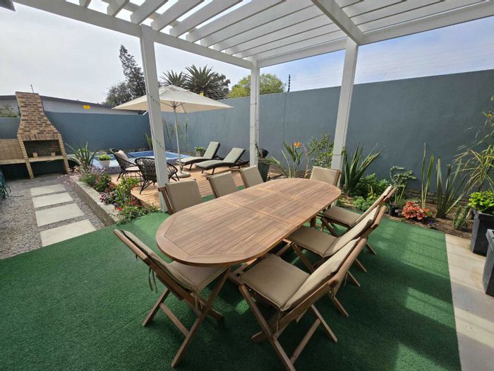 Relaxed family living in peaceful Venita neighbourhood, perfect for entertaining with enclosed outdoor braai and minibar, manicured garden and versatile bachelor pad. Three-bed, two-bath, three garages.