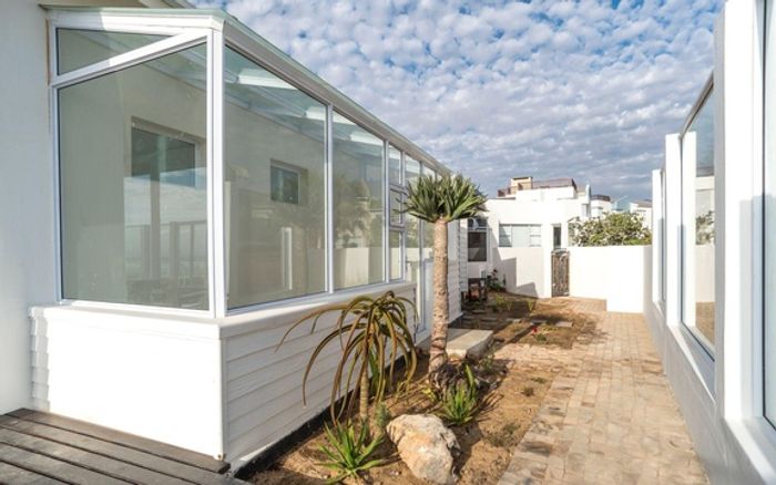 Beachside living in Vogelstrand with panoramic ocean views and private servitude direct to the sand; flexible 6-bed, 6-bath home plus 1-bed flat and four garages.