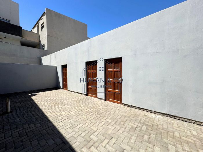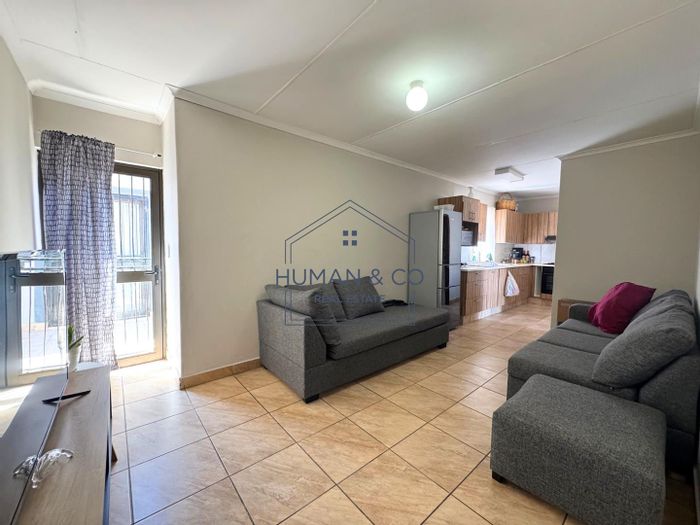 Townhouse with 2 bedrooms, 1 bathroom, open kitchen, lounge, scullery, large courtyard, and single garage; 100 m².