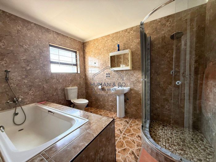 Three bedrooms, two bathrooms, one garage; 289 m² floor size on 785.81 m² land in Hermes, Walvis Bay.