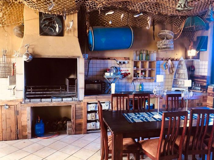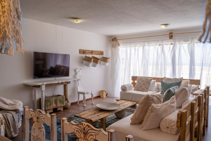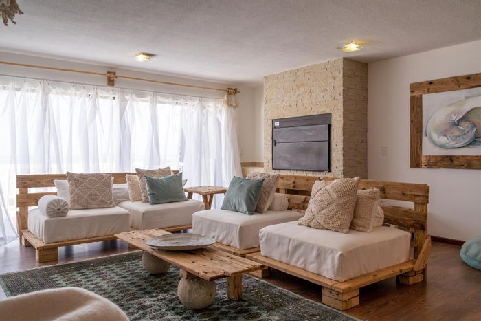 Coastal Langstrand retreat ideal for entertaining and investment, with sweeping desert-to-sea sunset views, expansive erf with outdoor braai and balconies; six bedrooms, four bathrooms, two garages.