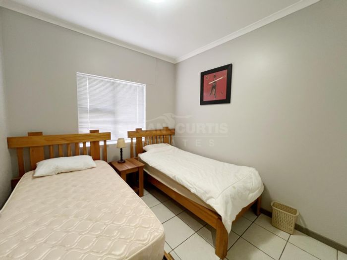 Embrace relaxed beachside living just steps from the sand in a secure complex, with a balcony featuring an outside braai — three bedrooms, two bathrooms and double garage.