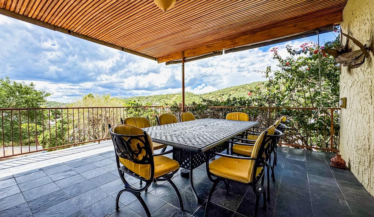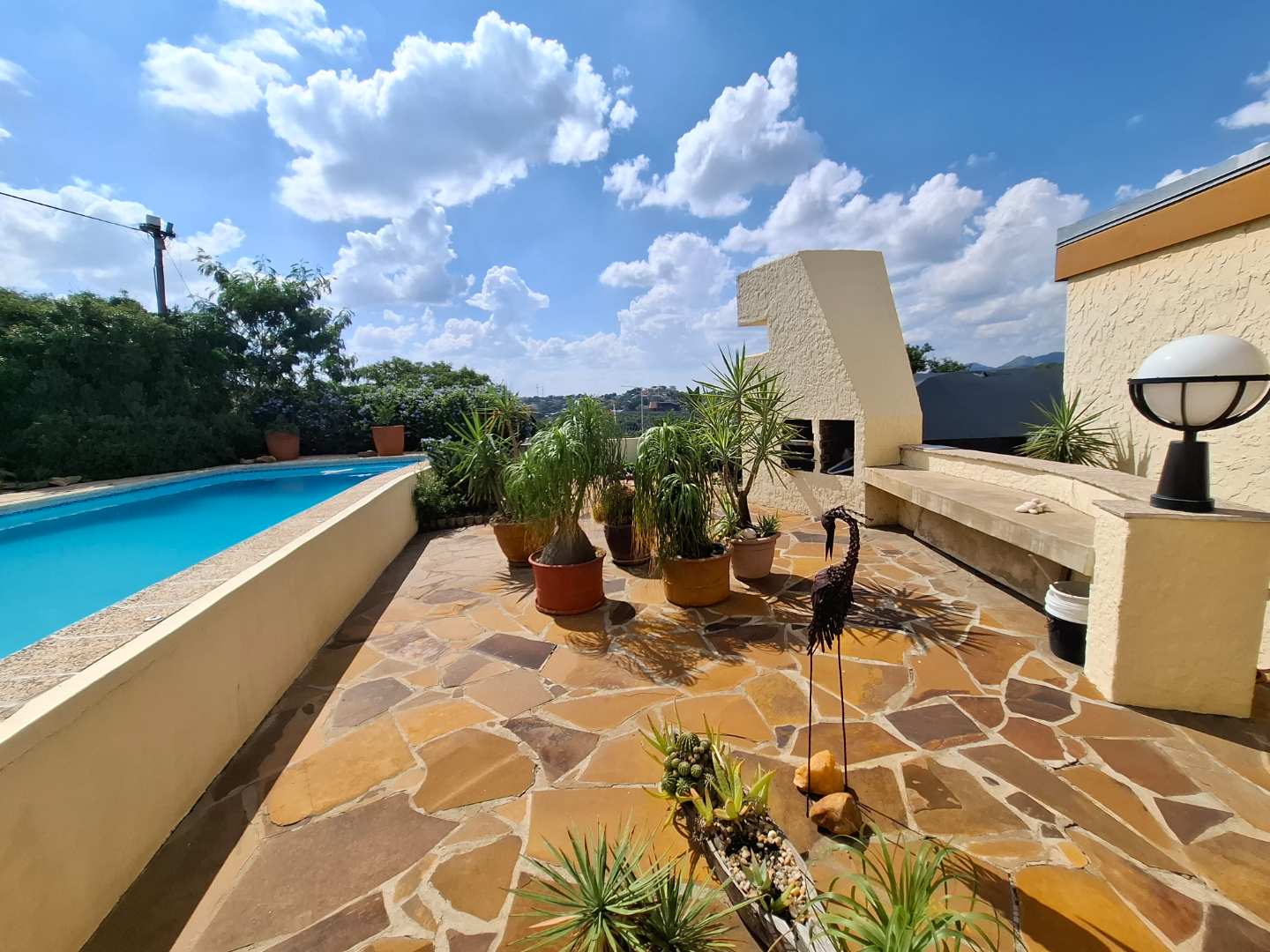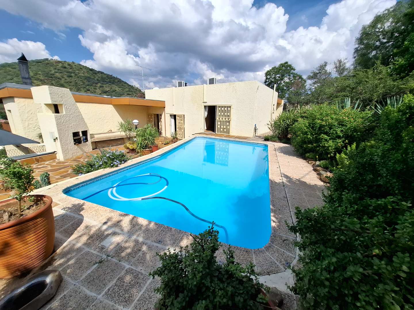 This stunning high-set classical home offers breathtaking Northern and Eastern views that will captivate you from the moment you arrive. Owned and loved by the same family since 1992, this home has been meticulously maintained with German perfection, ensuring every detail is cared for. Featuring four spacious bedrooms, two of which open to the pool area, this home is perfect for family living. The master bedroom boasts air-conditioning for ultimate comfort, while the two bathrooms include an en-suite for added convenience. The living areas are generously sized, providing a seamless flow to a large balcony with a BBQ area, making it ideal for outdoor entertaining with gorgeous views. With two separate fireplaces, one of which was imported from Germany, the living space offers both warmth and charm. A fully fitted bar flows effortlessly to the entertainment balcony, adding an extra touch of luxury.