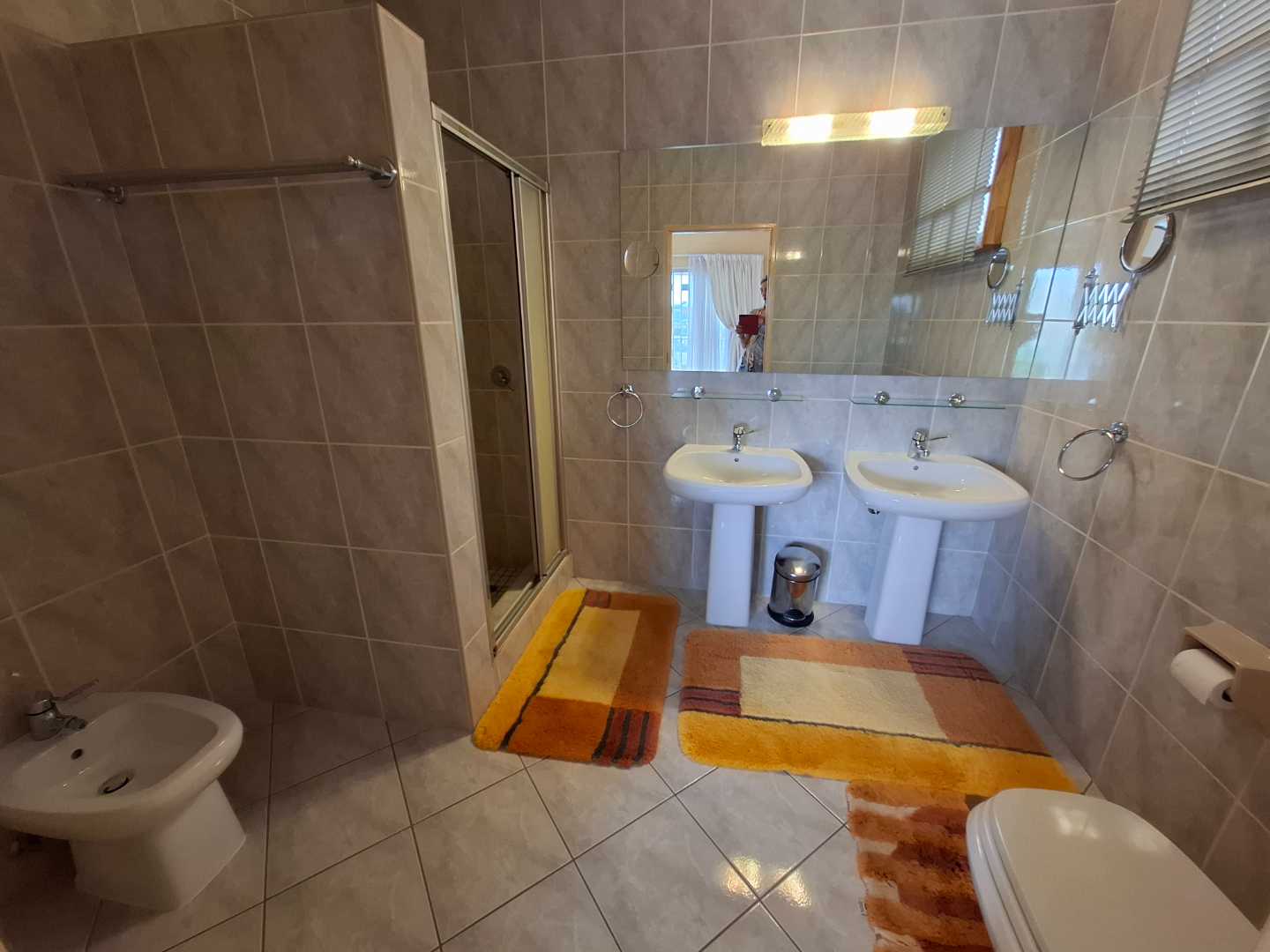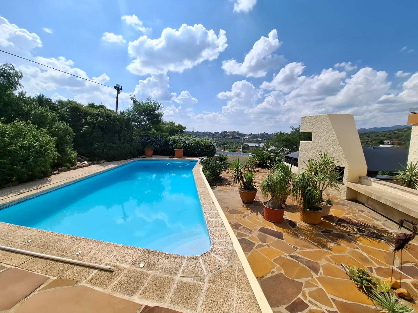 Outside, you’ll find a low-maintenance indigenous garden that enhances the home’s natural beauty, along with a large pool and another outdoor BBQ area to enjoy the outdoors. The kitchen is crafted from solid Namibian wood, complete with a spacious scullery/laundry area and a pantry for ample storage. For added convenience, the home includes an extra-large double garage, a double carport with a solid roof, and a double shaded carport. Additionally, your guests will enjoy the privacy and comfort of a one-bedroom garden flat, which is completely separate from the main house. This flat offers the potential for excellent income as an Airbnb, making it a great investment opportunity.