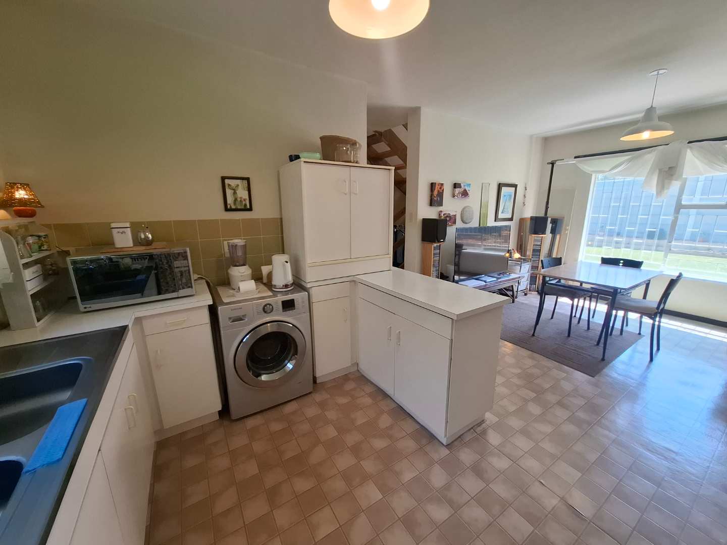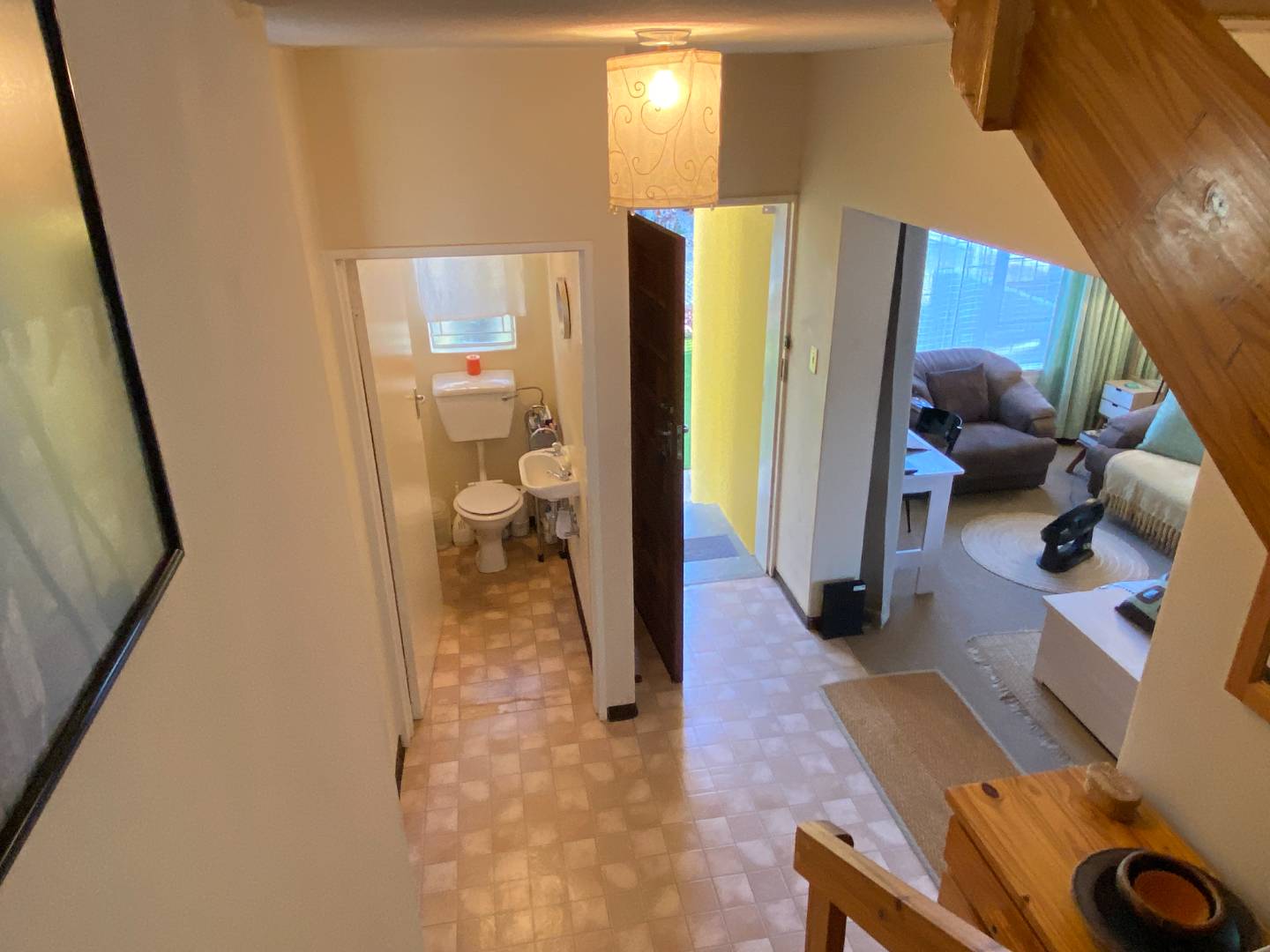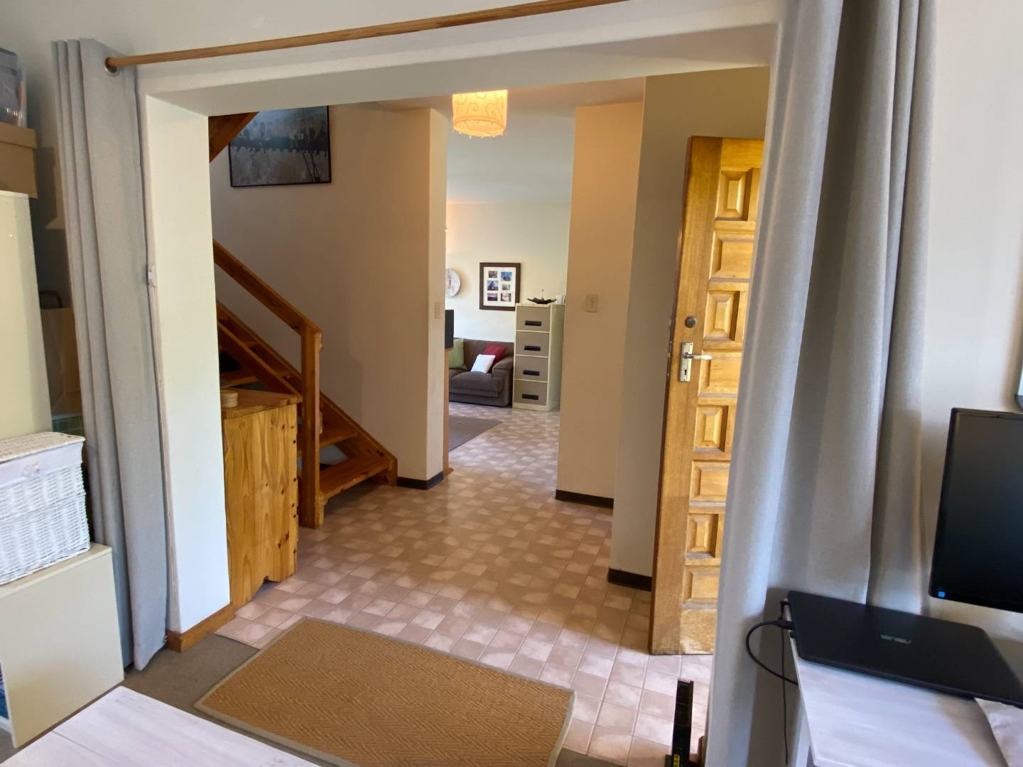 Upstairs offers two spacious bedrooms with built-in cupboards, and a bathroom with a bathtub. Downstairs, you’ll find a large lounge, a dining area that flows openly into the kitchen, and a guest loo for convenience.