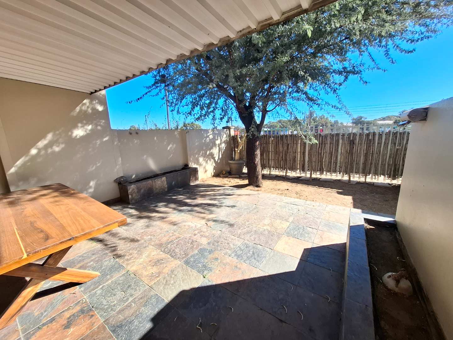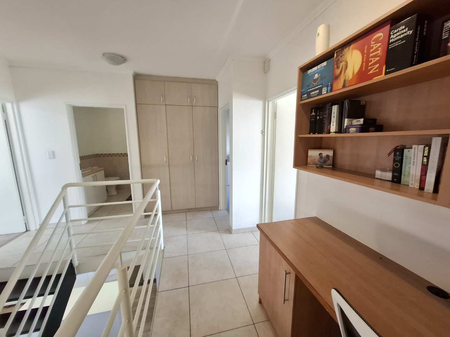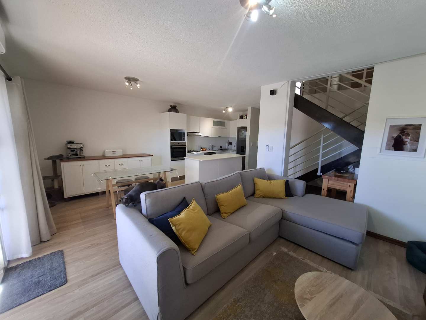 The open-plan living area is air-conditioned and flows seamlessly onto a generous, pet-friendly garden through sliding doors. A fully grown thorn tree adds natural charm and shade, creating a peaceful outdoor retreat. The kitchen is a chef’s dream, featuring sleek Caesarstone countertops and a modern gas stove. Additional highlights include a separate laundry room and a guest toilet downstairs.