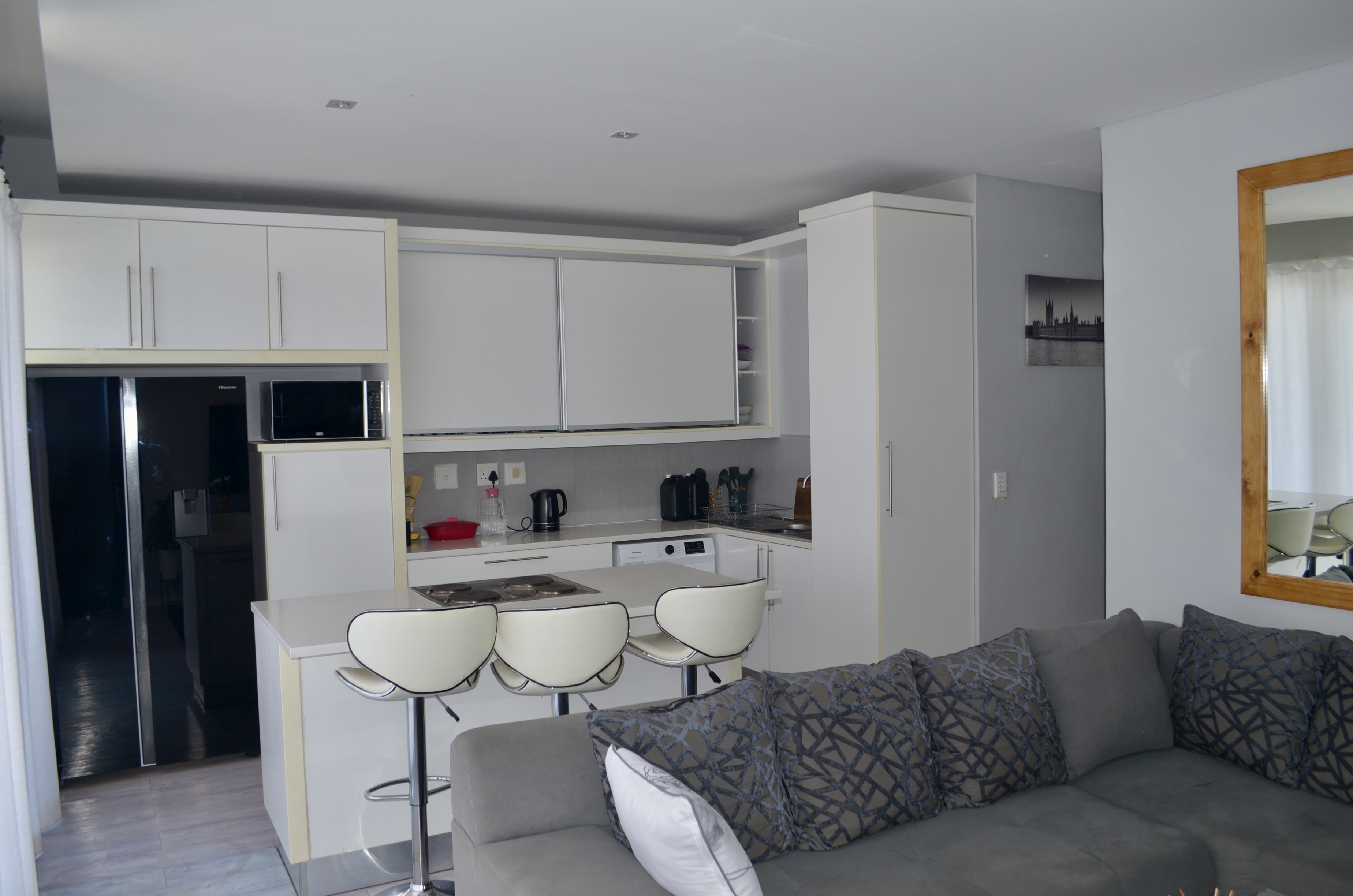 Introducing a well-appointed townhouse offering exceptional comfort and modern living in a secure, sought-after complex. Step out onto the beautiful patio, complete with a built-in braai, ideal for entertaining guests while enjoying stunning views. The semi-spacious living area is fitted with an air conditioner and flows seamlessly to the patio through sliding doors, creating the perfect indoor-outdoor connection. A DSTV dish is already installed for your convenience.